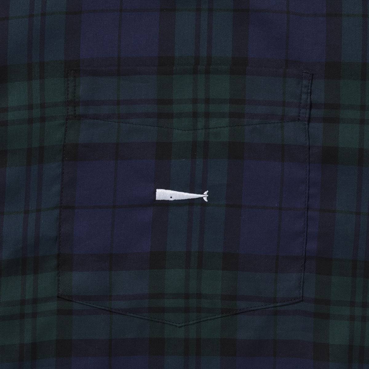●ゆったりした身幅のシルエットに、ボタンダウンカラー、センターボックスプラケット、ガントレットボタン付きの剣ボロ、CACHALOTの刺繍ロゴ入りバストポケット付き。