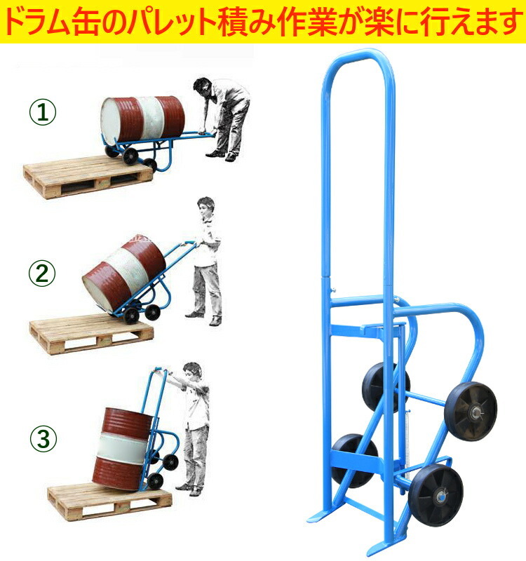 ・ドラム缶を転がさなくても安全にパレットに載せることができます。