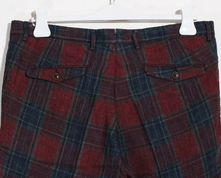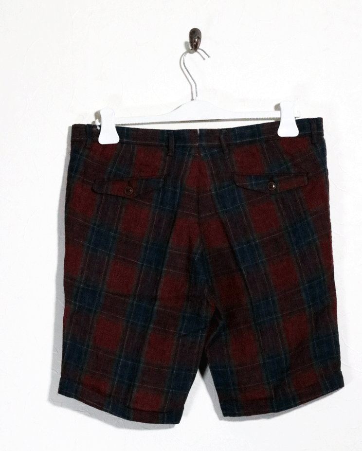 | 新品 made in italy ●国内参考価格:25,000円(税抜) ●カラー:レッド系 チェック柄 素材:綿100% ●サイズ:50 平置き実寸 ウエスト幅 47㎝ 股上 23.5㎝ ヒップ幅 51㎝ 太もも幅 30㎝ 股下 27㎝ 裾幅 24㎝ ●綿100%を使用したはき心地の良いチェック柄ショートパンツです。 ●ボタンフライ。 | |||