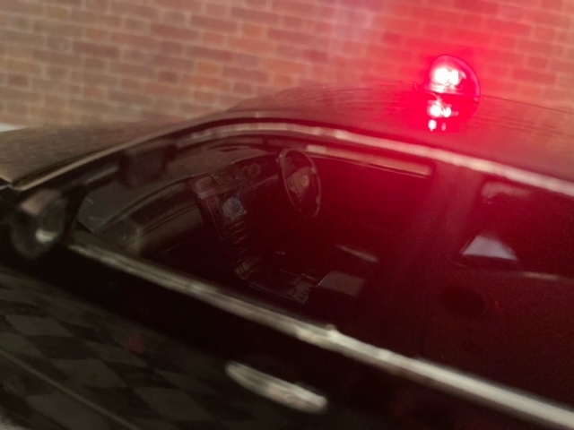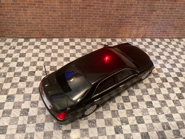 ヘッドライトとフォグランプ点灯用の2032電池×2のスイッチ付き電池boxとパトランプLED2灯点滅用ボタン電池(別スイッチ)は車体裏に仕組んでます。 パトランプに2灯点滅球仕組み回転灯を再現しております。