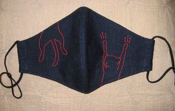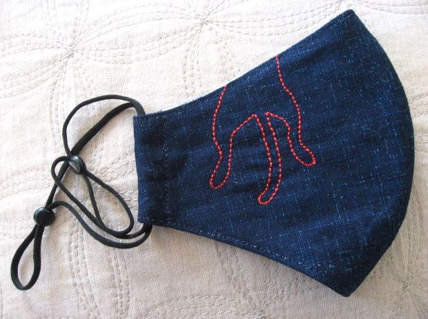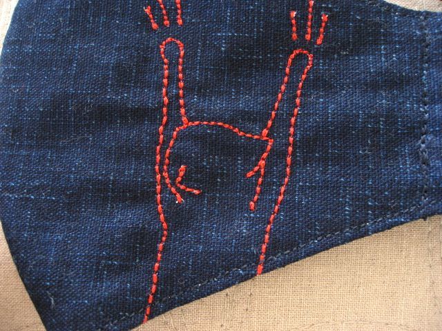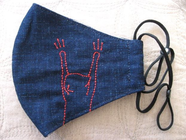 猫ステッチの入ったデニム素材のマスクカバーです。 サイズ(半分に折った状態で): ヨコ約12㎝、タテ約13㎝ 素材 :綿100%、裏2重ガーゼ地 色 :濃紺 未使用です。 洗濯は手洗いでお願いします。 |