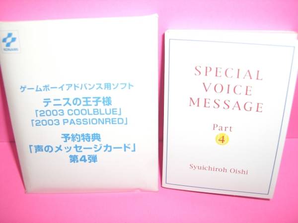 ☆GBA 【テニスの王子様】声のメッセージカード 第4弾 ☆新品☆ です。 ☆写真撮影のため、開封し、確認の為、1度だけ押しました。 大石が話しかけてくれます。 ☆【即決】価格ですので、オークション残日数、時間に関係なく入札確認次第終了いたしますので、よくお考え頂き御入札下さい。 ★注意事項★ ・お支払い方法は、【Yahoo!かんたん決済】 のみとさせていただきます。落札後1日以内に連絡が取れない方、2日以内に入金できない方はキャンセル扱いとさせていただきます。商品はノークレームノーリターンでお願いします。 ■発送方法■ ゆうパック もしくは 定形外(補償なし)どちらか選択いただけます。送料はご負担ください。 ■定形外(補償なし)の場合¥120です。 ■ゆうパックの場合の送料 [ 愛知 ] 800円 (県内) [北海道] 1400円 (北海道) [ 東北 ] 950円 (青森、岩手、秋田、山形、宮城、福島) [ 関東 ] 850円 (茨城、栃木、群馬、埼玉、千葉、東京、神奈川、山梨) [ 信越 ] 850円 (新潟、長野) [ 北陸 ] 850円 (富山、石川、福井) [ 東海 ] 850円 (静岡、岐阜、三重) [ 近畿 ] 850円 (滋賀、京都、大阪、兵庫、奈良、和歌山) [ 中国 ] 950円 (鳥取、岡山、島根、広島、山口) [ 四国 ] 950円 (香川、徳島、愛媛、高知) [ 九州 ] 1080円 (福岡、佐賀、大分、熊本、長崎、宮崎、鹿児島) [ 沖縄 ] 1330円 (沖縄) ■悪戯入札を防ぐために、新規の方、キャンセル履歴がある方のご入札は、こちらの判断でご入札を取り消しさせていただきますのでご了承ください。