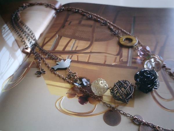 ニューヨーク・物語シリーズです!アンティークモダンなネックレス2本セットです♪キュートな素材を集めて楽しい表情です♪シンプルなデザインは8ミリと13ミリのコインのメタルチャームです♪長さは全長80センチ位で調節自由です♪トップは9センチ位です♪オリエンタルな模様の素敵なインドビーズは15ミリです♪18ミリの樹脂薔薇や透かしパーツやドイツビーズやチェコビーズ、15ミリのワイヤーボール、黒蝶貝の小鳥さんやシェルリング、お花のチェーンなど個性的な素材を集めてシックにまとめました♪大人っぽい可愛さです♪長さは全長60センチ位です♪チョーカー風にしてもブレスにしても素敵です♪シンプルで長く着けて頂けるデザインを考えて作りました♪ハンドメイドをご理解頂いてノークレーム、ノーリターンでお願いします