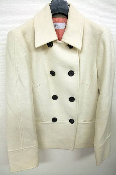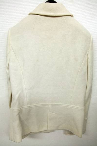 ピーエックス EV ウールジャケットです。色はクリーム色っぽい感じです。裏地付きですが中綿入りではないので割りとすっきり着れますよ。表地 毛80% ナイロン20% 裏地 ポリエステル100%◆サイズは36で着丈約58cm・肩幅約38cm・袖丈約59cm・身幅約42cmです。◆USEDです。袖先と背部分に小さなシミが一つ有ります。◆