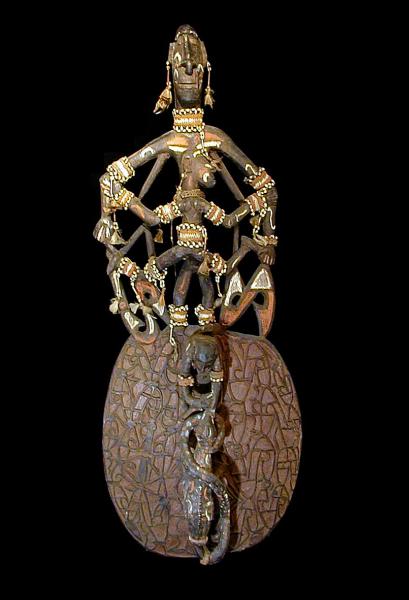 アスマットのパネル彫刻(ワニに腕を噛まれた男)