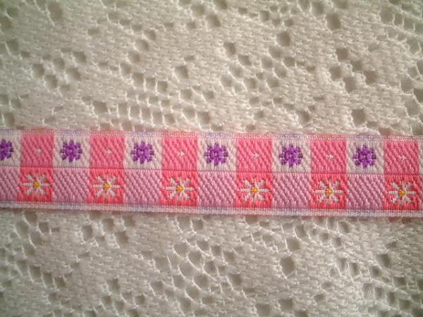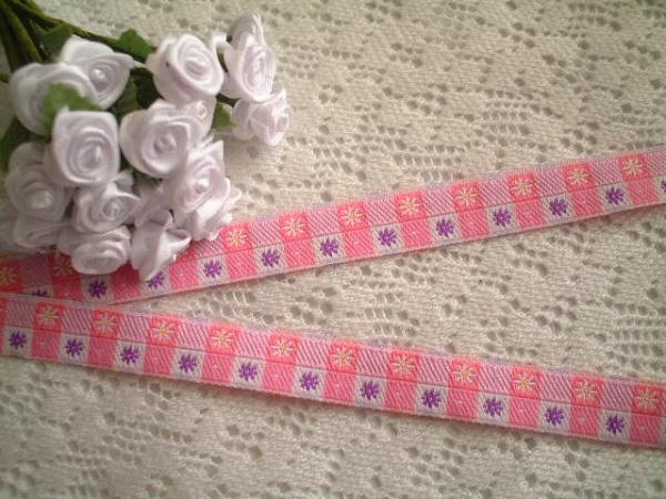 ご覧頂きありがとうございます。 ピンク系のチェック柄に小さなマーガレットとパープルの小花が刺繍されたリボンです♪ チロルの巾は12mm★になります お取り置きも承りますので、落札後に1度必ずご連絡くださいませ。 オンラインショップとの同梱も可能です。 | ||