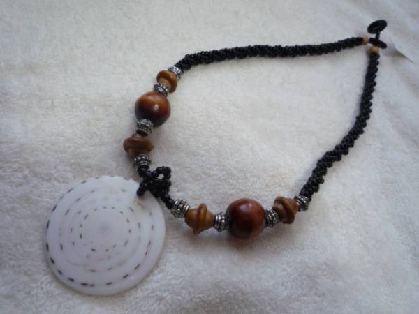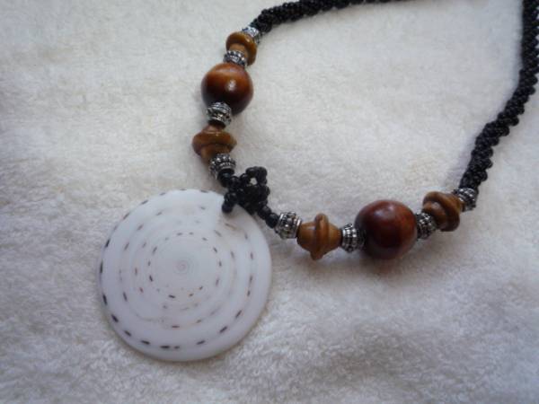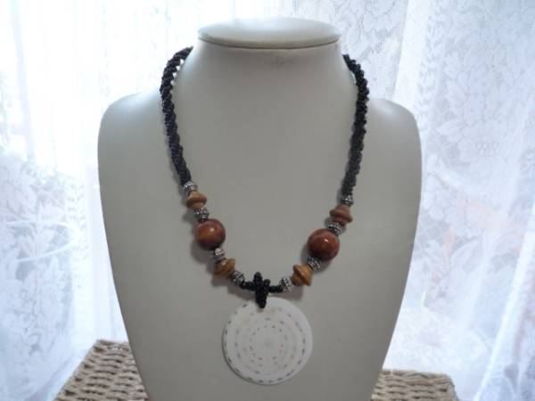 《アクセサリーの長さ、サイズなど》 ・ネックレスの長さ‥約45cm+アジャスターなし ・丸い飾りの大きさ‥約4.5cm ●白色の大きめの丸い飾りが付いたお洒落なネックレスです。 ●トップの飾りの横にはウッドビーズやシルバー色の飾りが 付いています。 ●チェーンの代わりに小さな黒ビーズが連なった物がねじれて付いており 存在感があります。 ●普段使いはもちろんお出かけなどでも使っていただけそうです。 ●さりげないおしゃれにいかがでしょうか? ●他にもお色違いのネックレスなど、多数アクセサリーを出品しております。 こちらより覗いてみてくださいね!→『マイブース』 | ||
