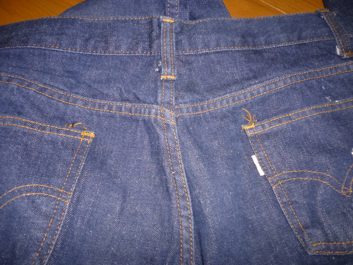 商品説明 | フロントはジッパーです。ジッパーはグリッパーみたいな形のスコービルです。レディースですので、ポケット位置が高いのと、ポケットが小さいです。前ポケのスレキも小さいです。でもこの時代はメンズもこんな感じだったと思います。雰囲気が良いと思います。 |