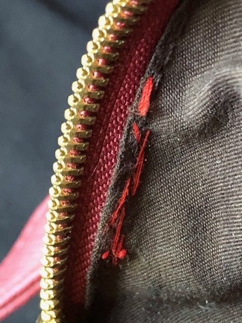 画像にあります様にサイドのファスナー部分のホツレがありましたので縫い付けました。