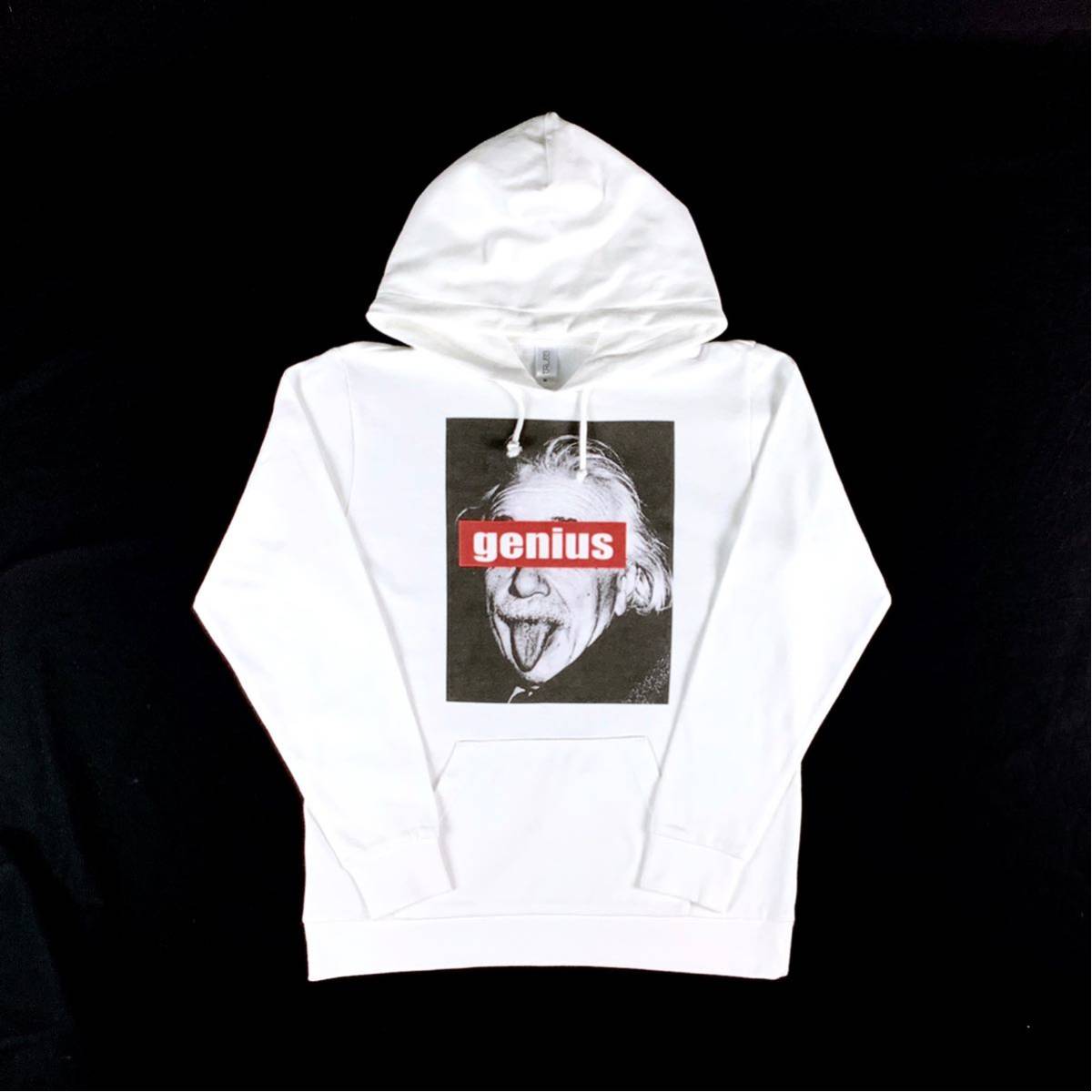 天才アインシュタインの有名なベロ出しフォトに目隠しでストリートテイストなカッコいいデザインです。