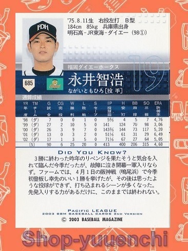 ◇2003◇BBM◇685◇永井智浩◇セカンドバージョン◇レギュラーカード◇複数落札まとめて依頼対応◇クリックポスト(追跡可)185円発送◇