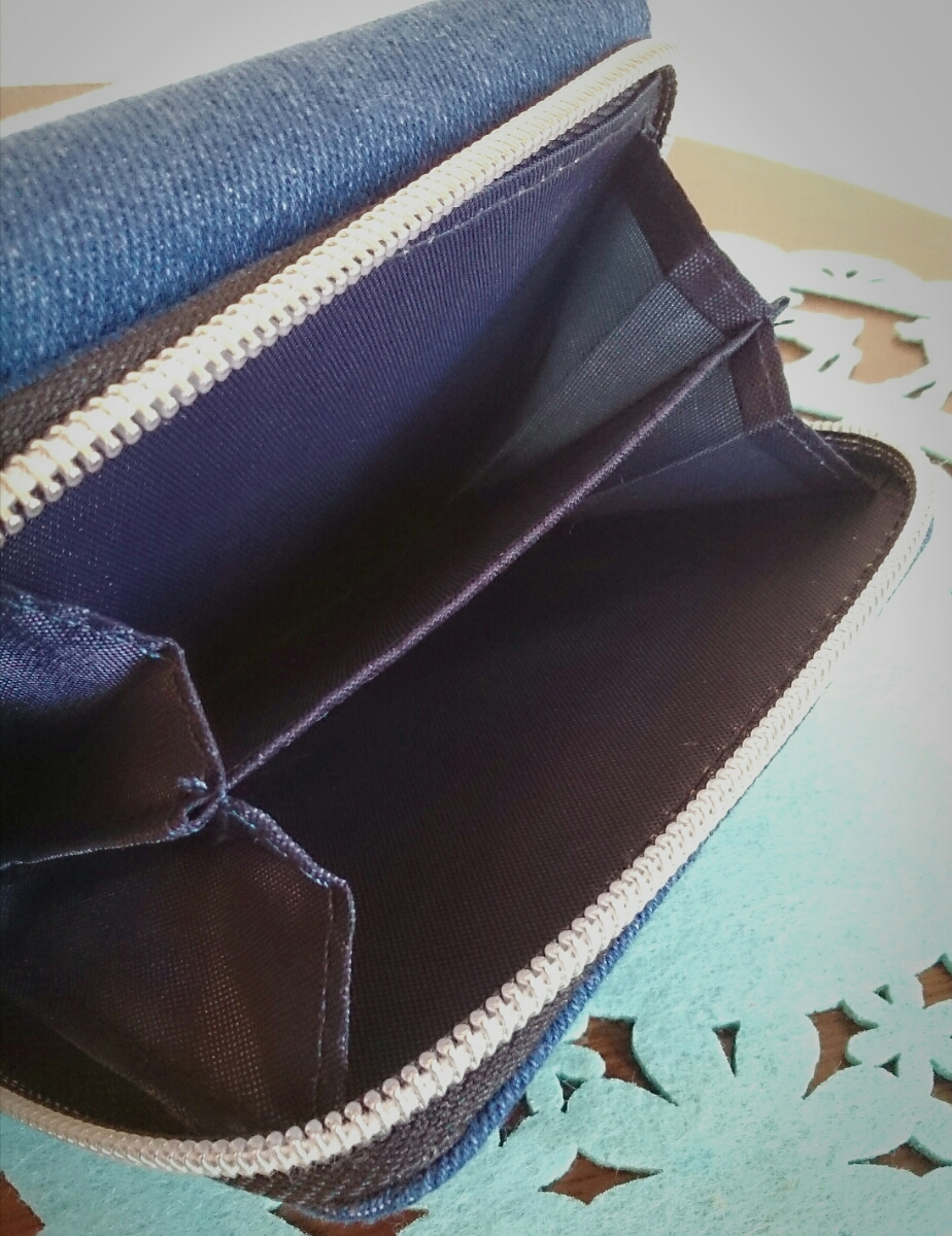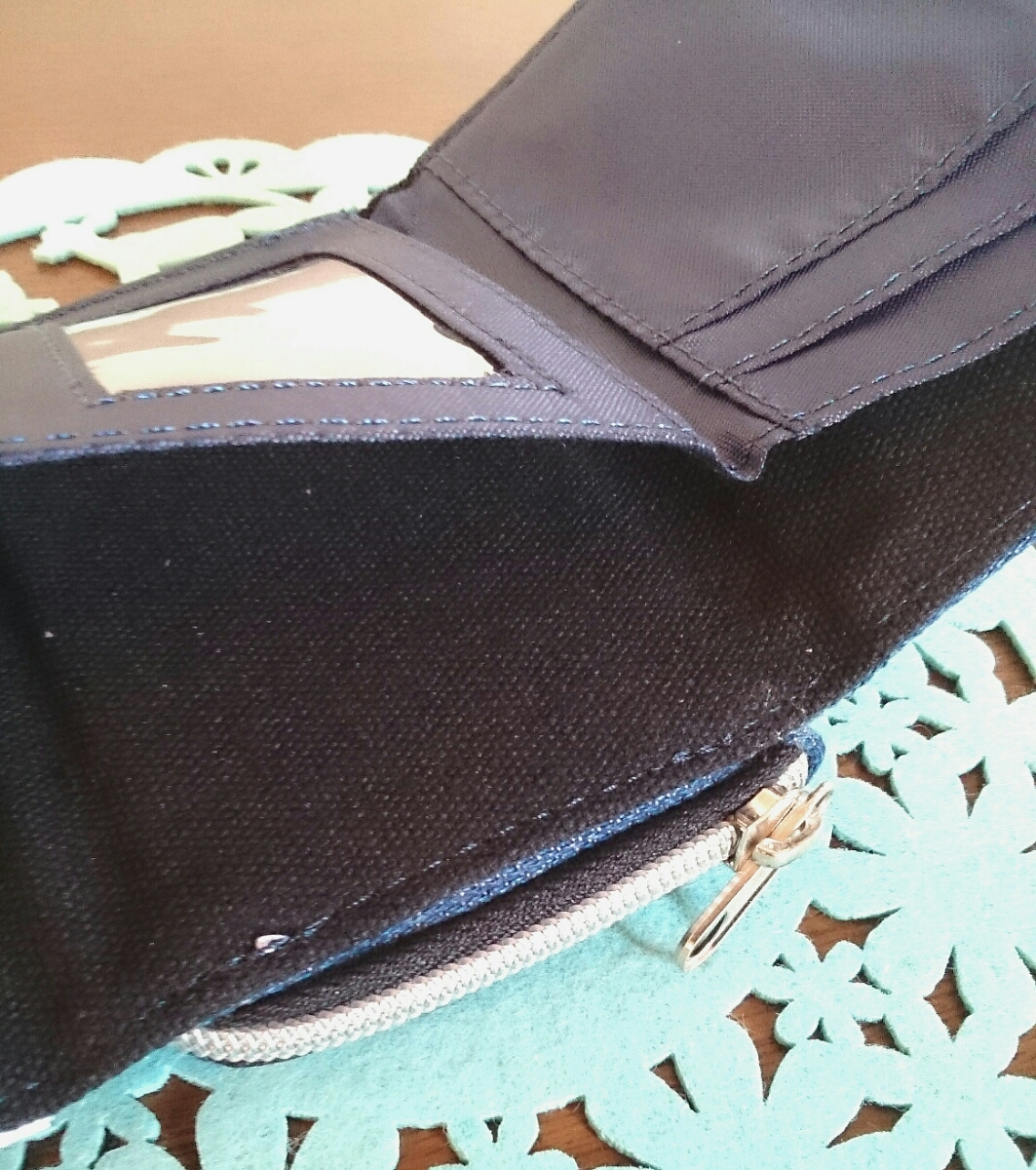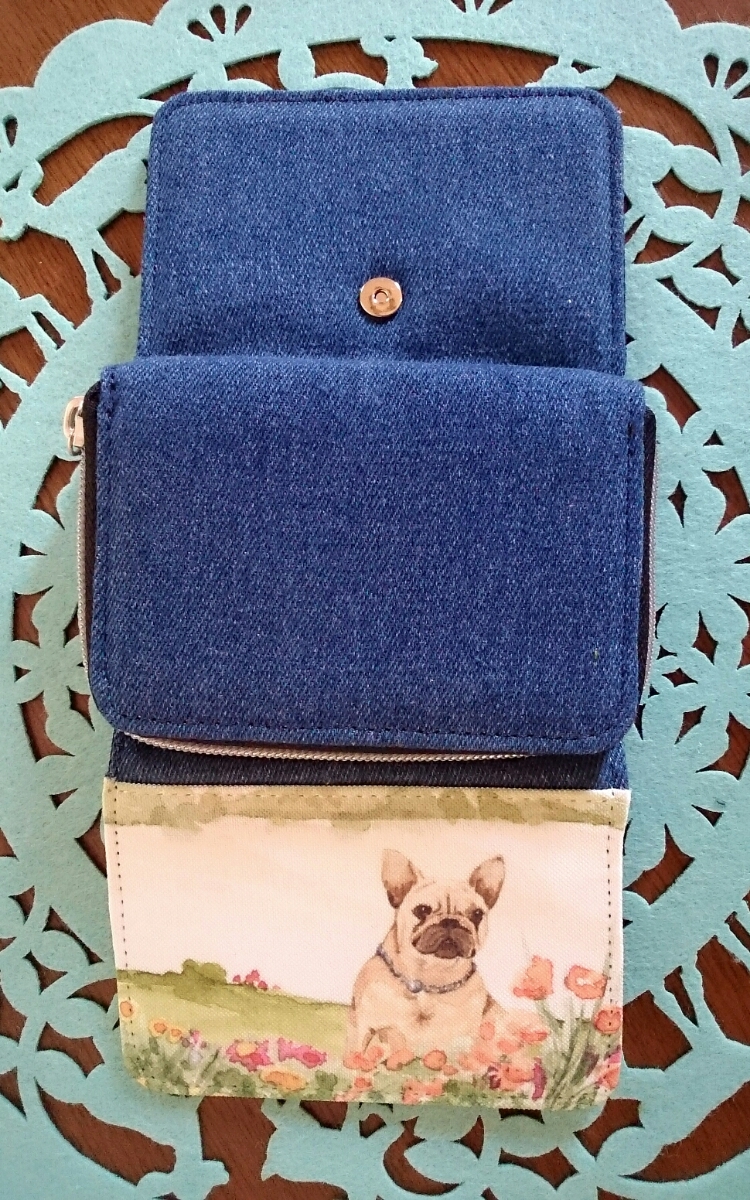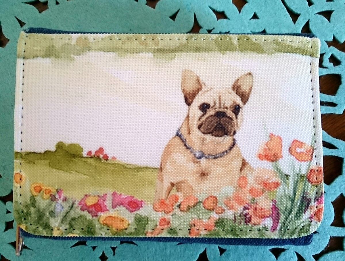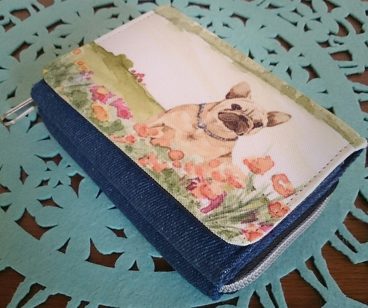 こちらは、フレンチブルドックの三つ折りデニム財布です。