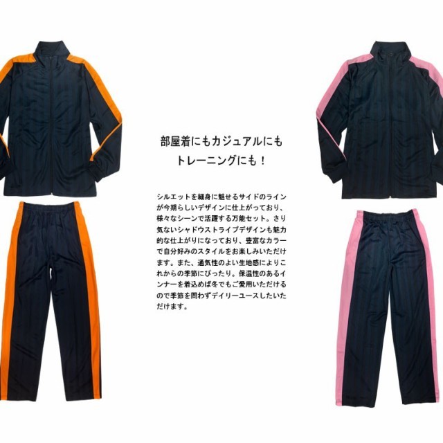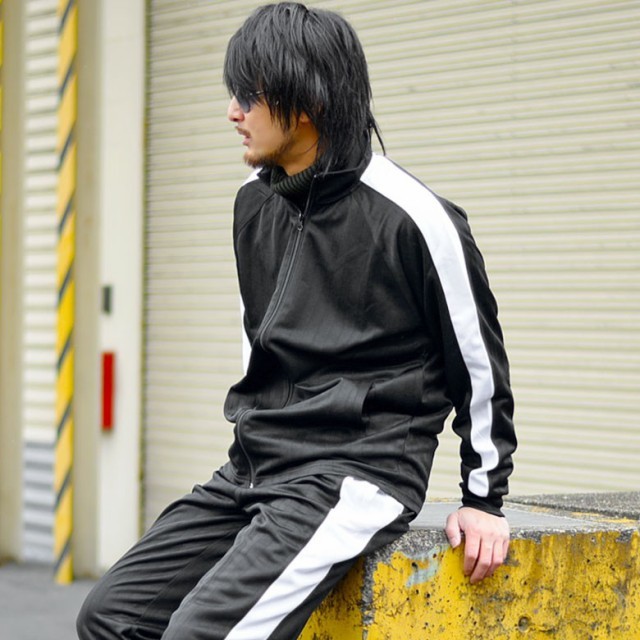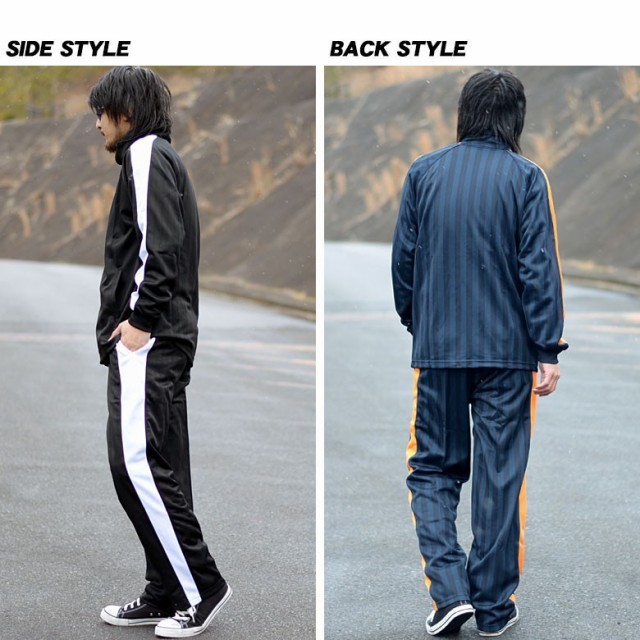 サイドの1本ラインがスポーティーな雰囲気を醸し出し、着回し度120%の万能ジャージ上下セットです。