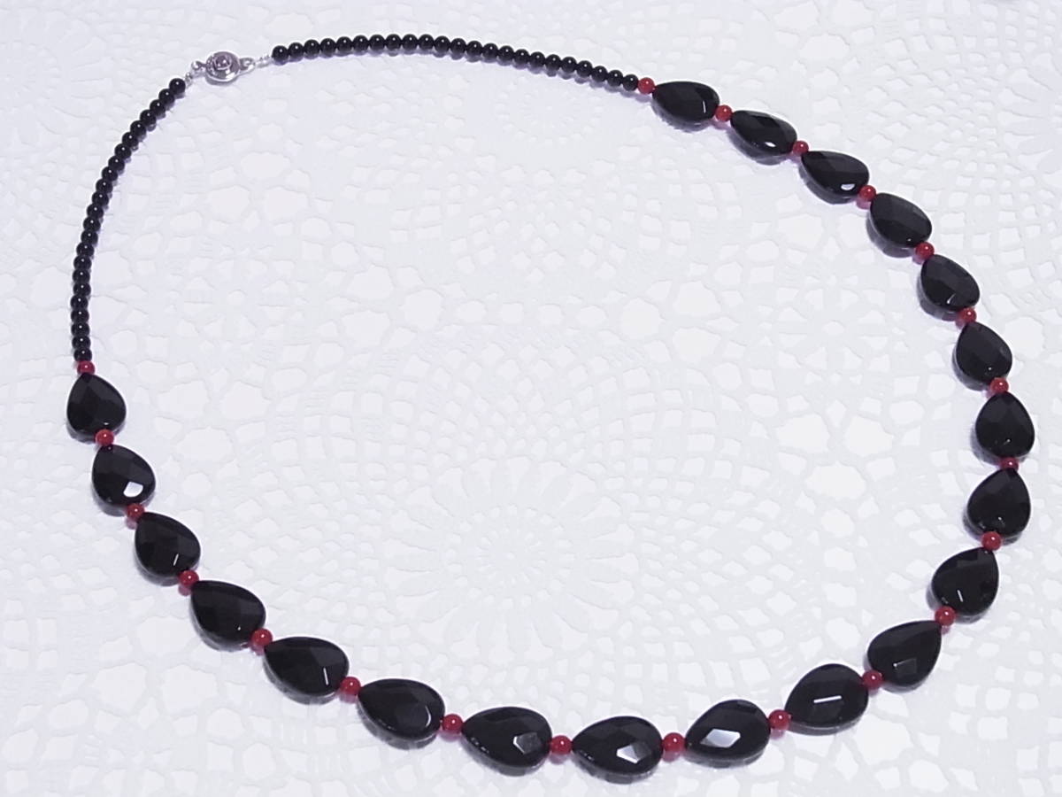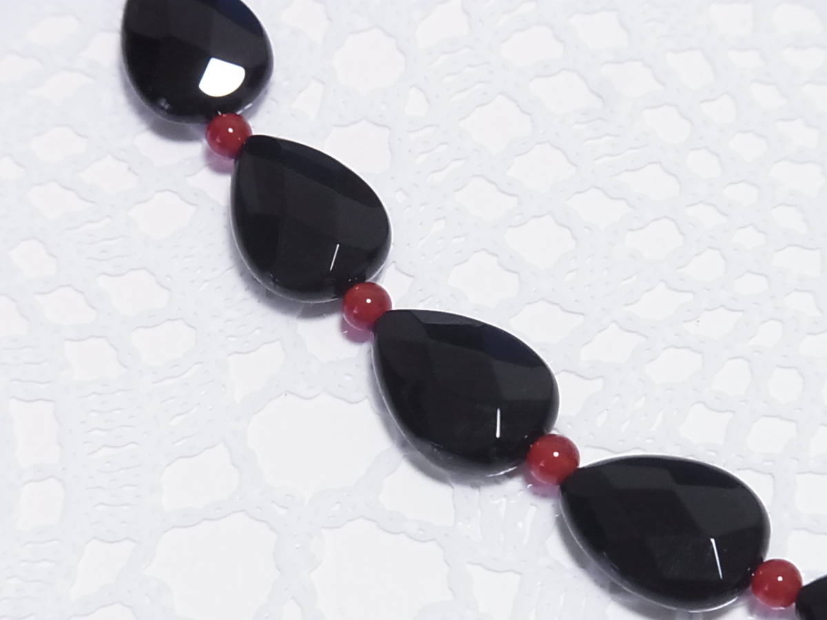 【数量限定販売になります】 使用石 : 天然ブラック・カルセドニー(染色処理) 約18×13mm(カット)ペアシェイプ:平べったい形状です 約4mm 天然赤瑪瑙(染色処理) 約4mm 長さ : 約65cm 重さ : 約45g 留め金 : ホック式 真鍮製(ロジウム・コーティング) コーティングステンレスワイヤー使用 【備考】 誠に勝手ながら、土、日曜日、祝日、長期休暇は、 発送業務をお休みさせていただいておりますので、ご了承下さい。 画像はサンプル画像ですが、サンプル画像と遜色のない商品をお送りします。 出来るだけ実物に近い画像を使っておりますが、実物と多少色が異なる場合がありますので、ご了承下さい。 環境に配慮して、必要以上の梱包をしておりませんのでご理解下さい。 基本的にはチャック袋等に商品を入れ、緩衝材で壊れないように保護してお送り致します。 プレゼント梱包はご対応しておりませんので、ご了承下さい。 スムーズなお取り引きを心掛けておりますが、仕事の都合上、ご返信、発送等に 多少お時間を頂く場合もあるかと思いますが、ご理解の程、よろしくお願いします。 ノークレーム、ノーリターンでお願い致します。 | |||