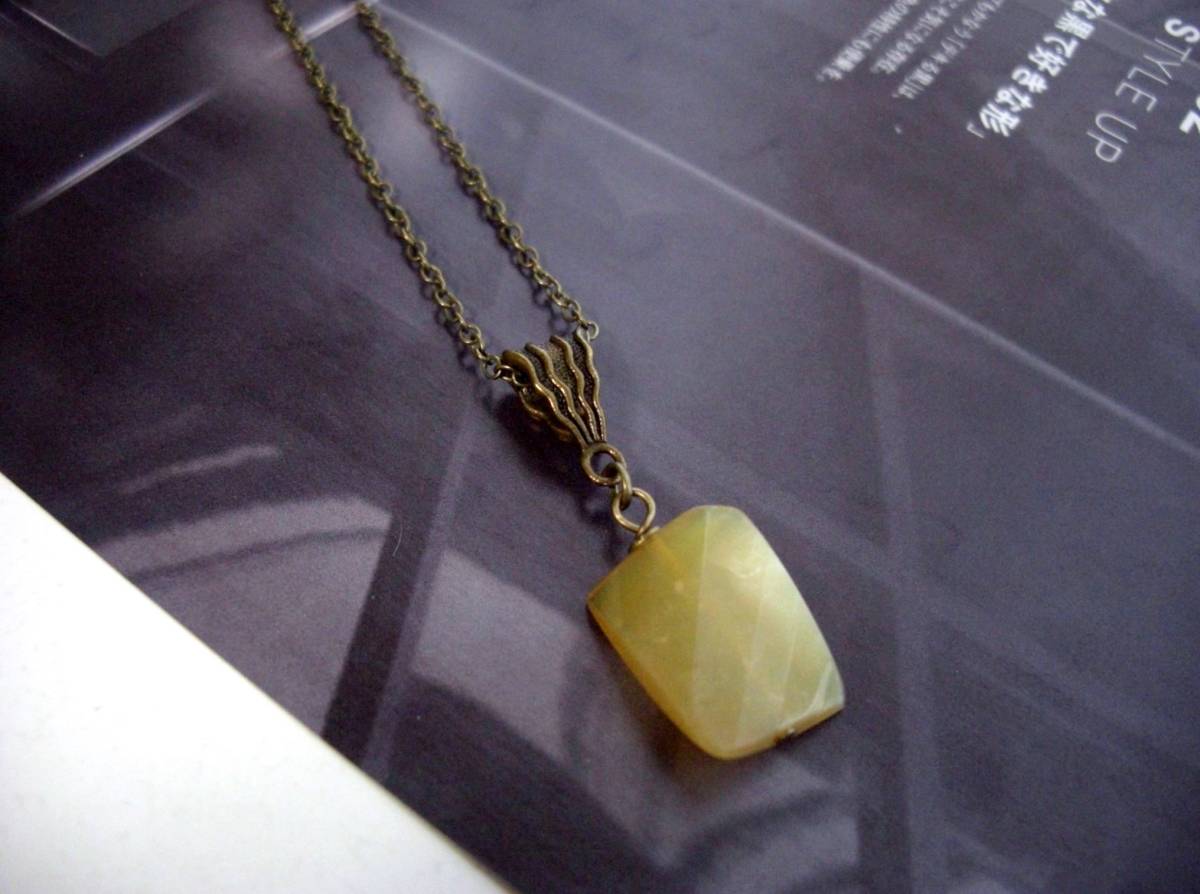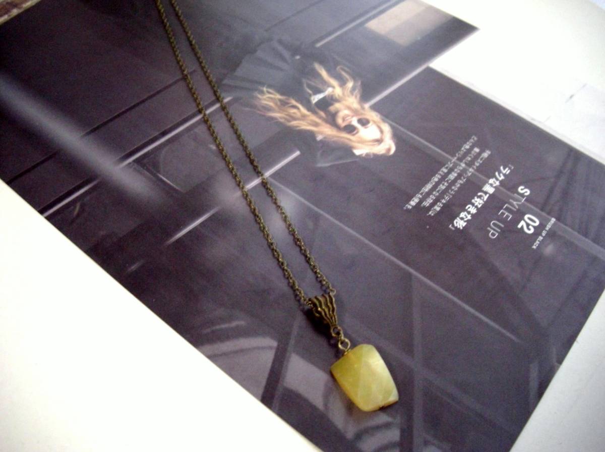 秋色クローゼット・・シリーズです♪ニューヨークの旅・・個性的なイエローオパールのネックレスです♪落ち着いたイエローカラーでまとめてシックな表情です♪20×15ミリ位 のスクエア型のイエローオパールは華奢なチェーンとクラシカルな座金を合わせました♪長さは72センチ+アジャスター13センチで最長85センチ位です♪ トップは4センチ位です♪お揃いのネックレスやブレスレットも出品しています♪シンプルで飽きのこないいつ までも着けられるデザインを考えて作りました!ハンドメイドをご理解頂いてノークレーム、ノーリターンでお願いします