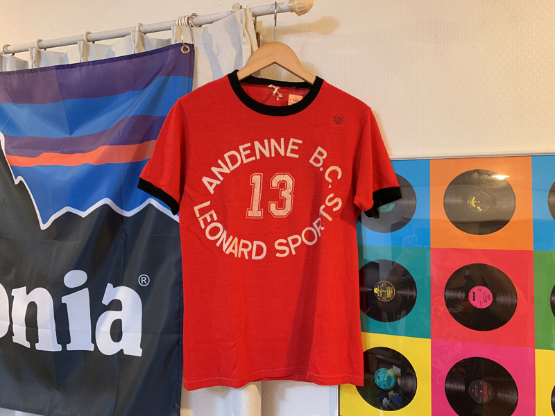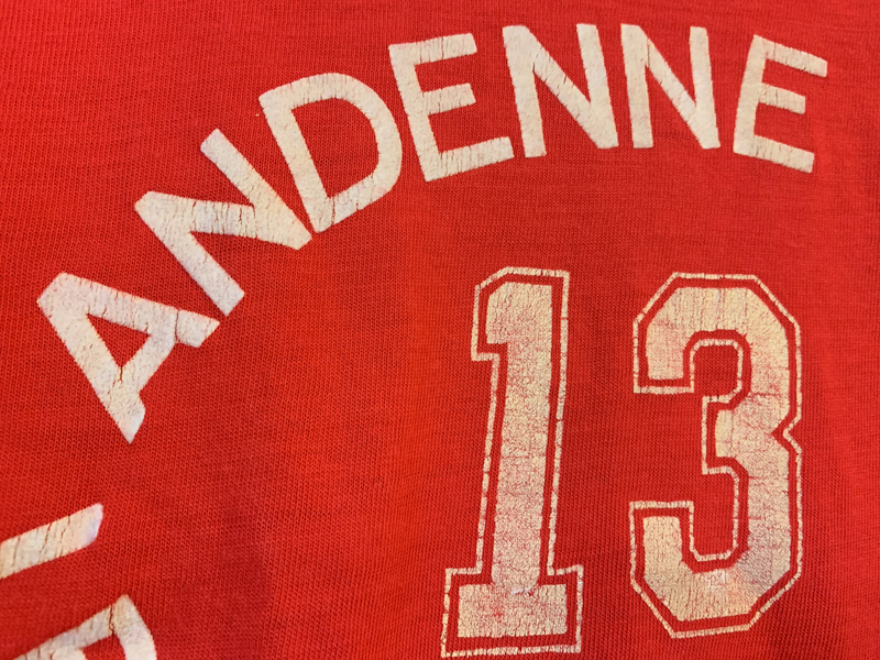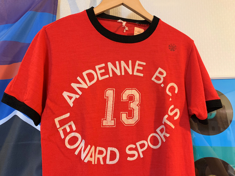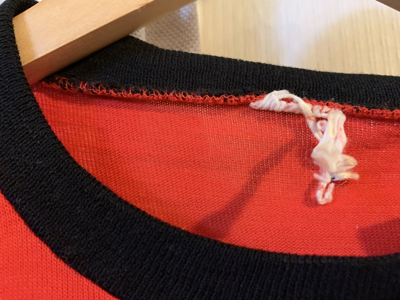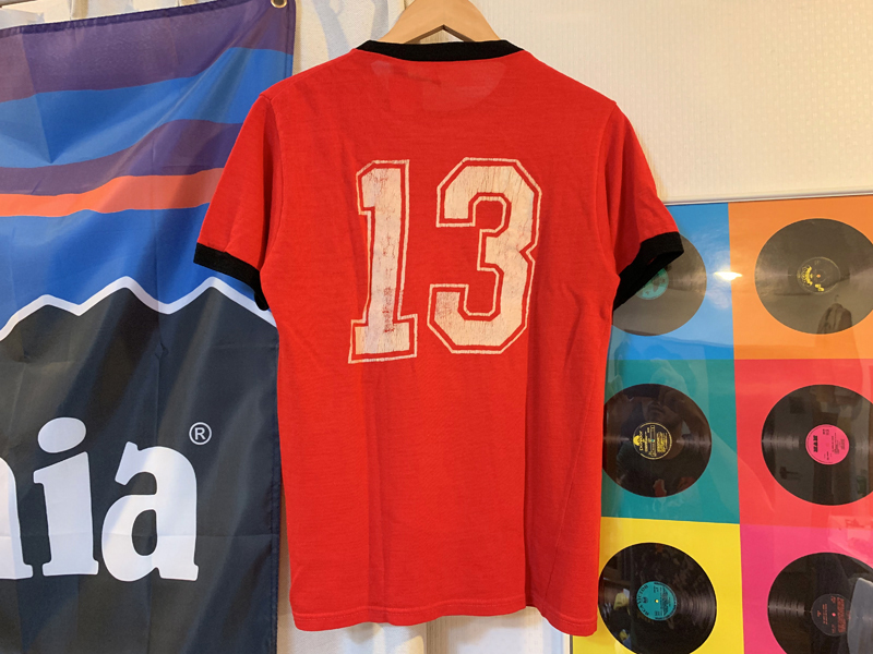Butterfly 60s ビンテージ レーヨン Tシャツ フロッキープリント ナンバリング レッド 赤 トリム Tシャツ
