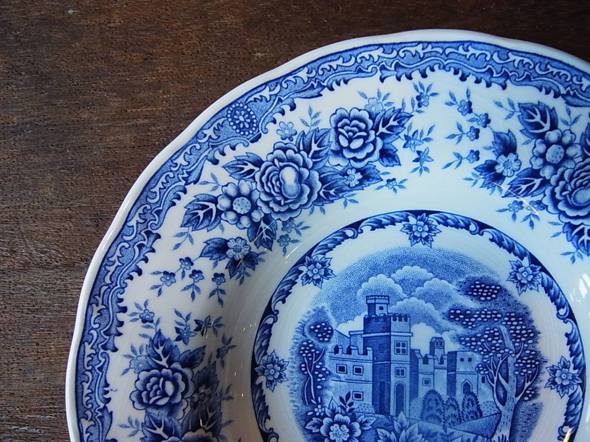青いお城と花柄の深皿になります。