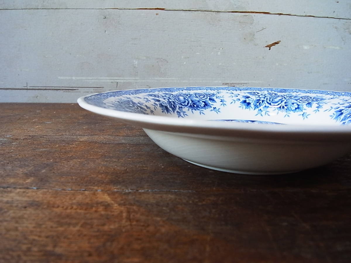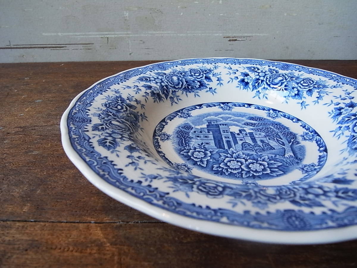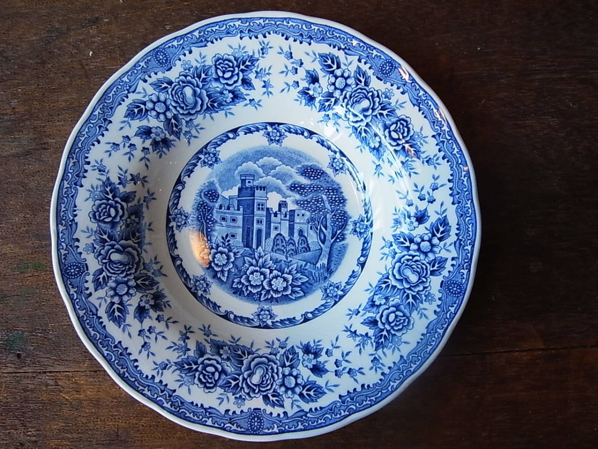 NIKKO ダブルフェニックス 青いお城と花柄の深皿②/ニッコー DOUBLE PHOENIX レトロ リム カレー皿 日本硬質陶器