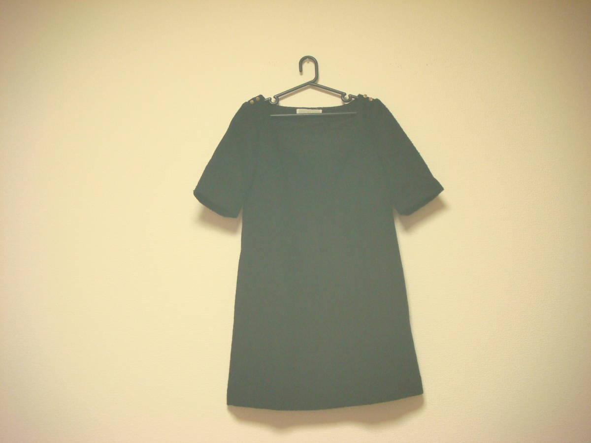 マーキュリーデュオ 厚手ツイード 金ボタン付き チュニック ワンピース 黒