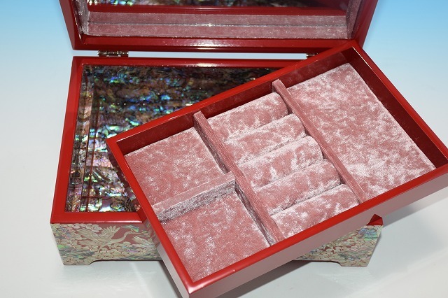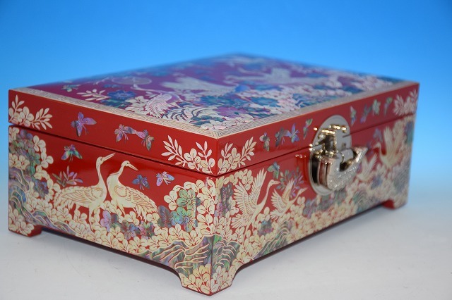 ◆■◆韓国 伝統工芸■最高級螺鈿宝石箱・HO-75■8号鶴の群れ・朱■豪華!◆ ■◆