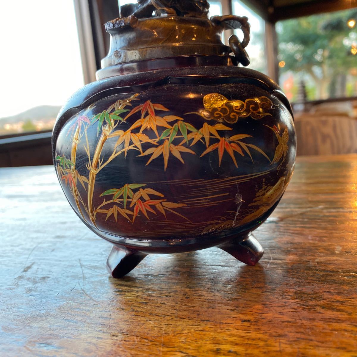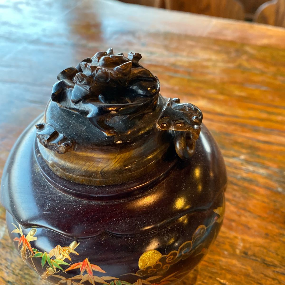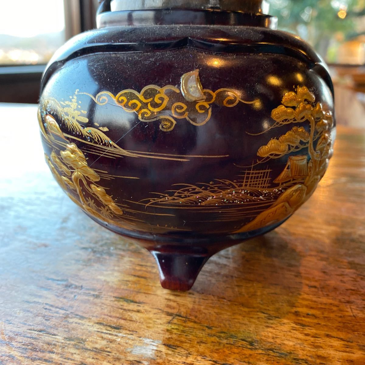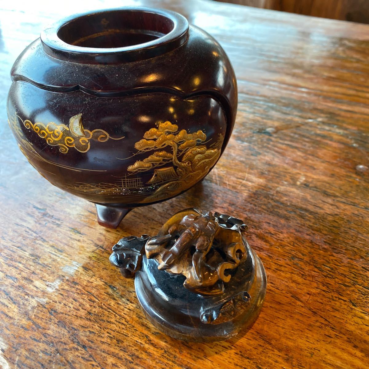 花梨木彫り金蒔絵が豪華な香炉でございます。