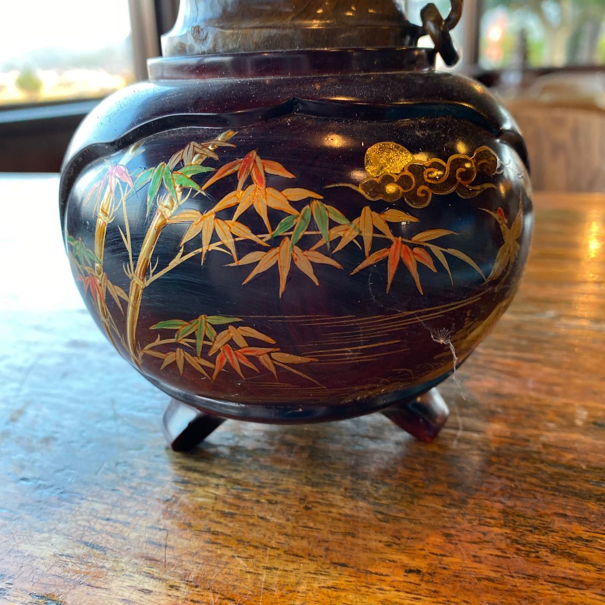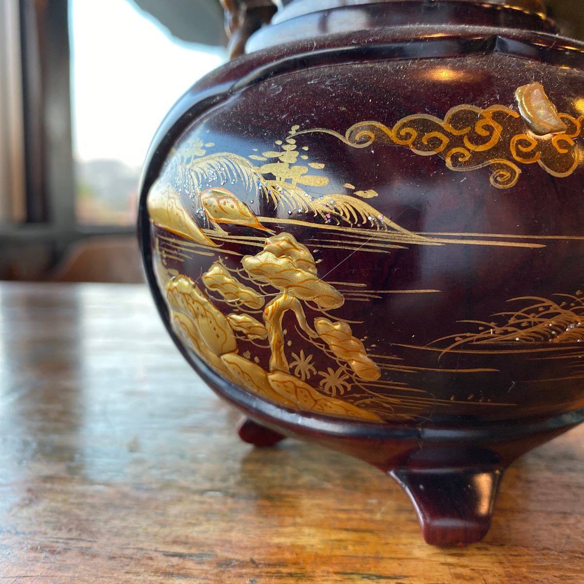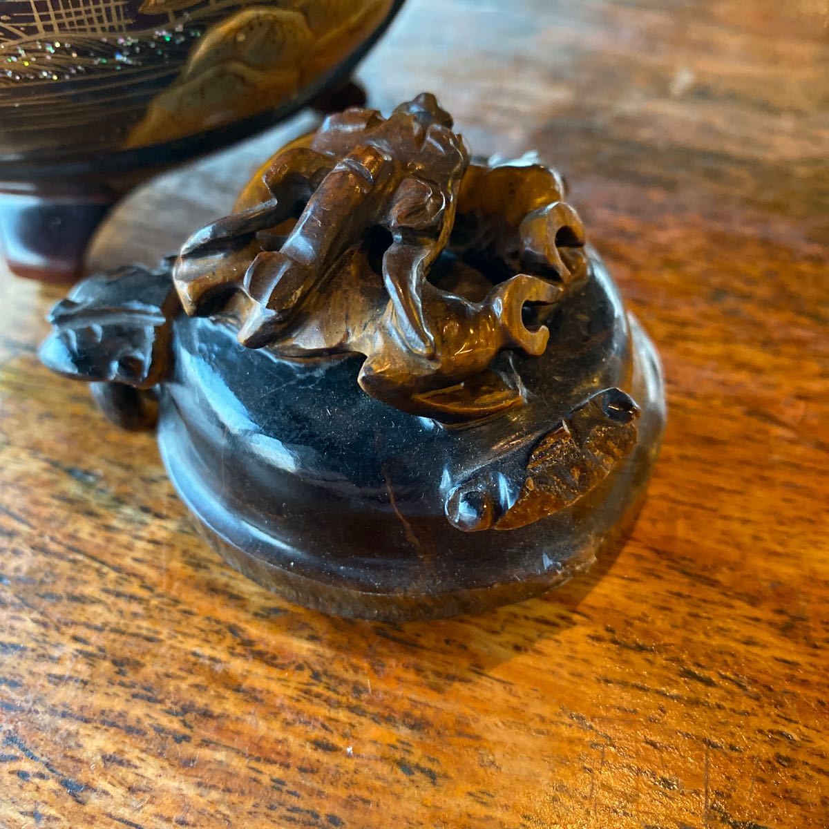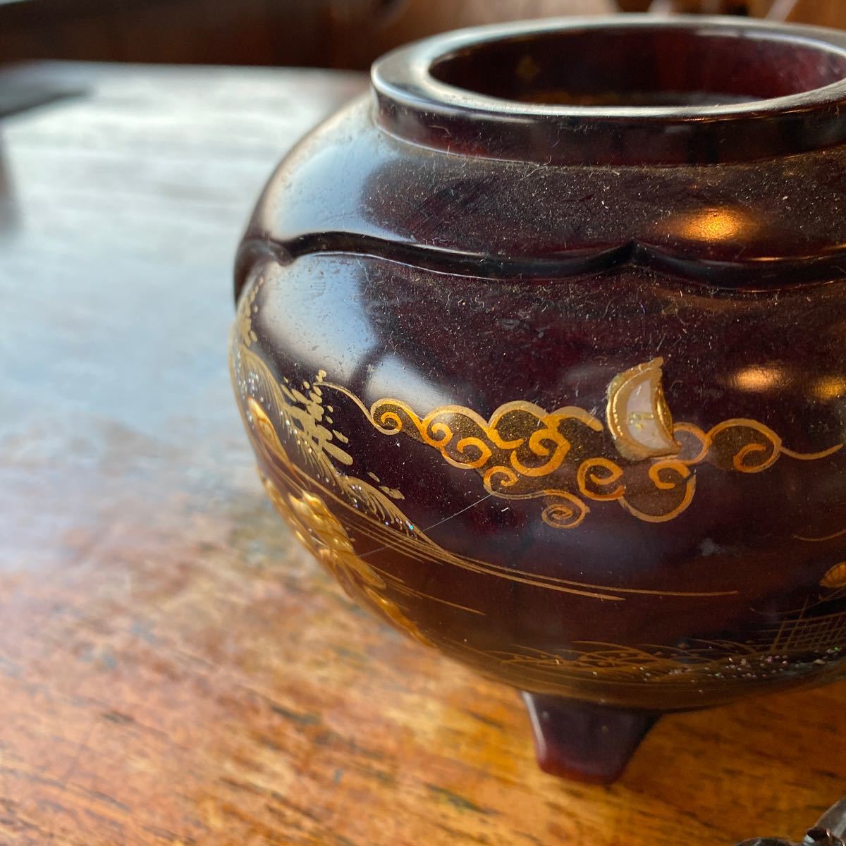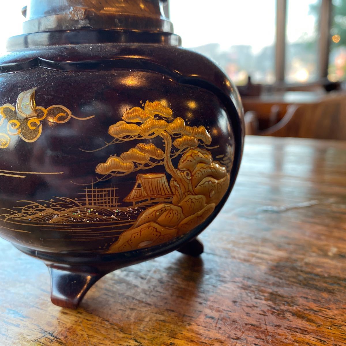 花梨木彫り金蒔絵が豪華な香炉でございます。