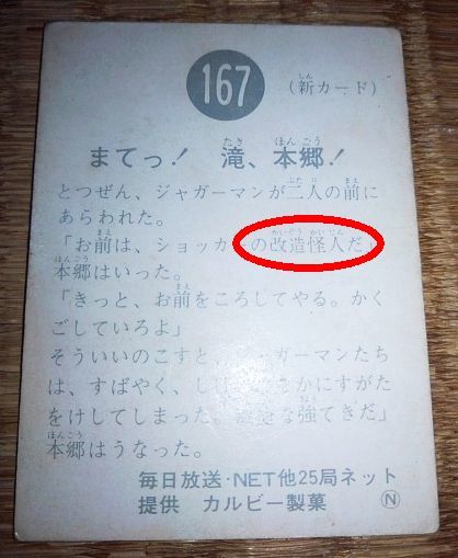 カルビー 仮面ライダー スナック カード 裏文章違い № 167 N版 「改造怪人」