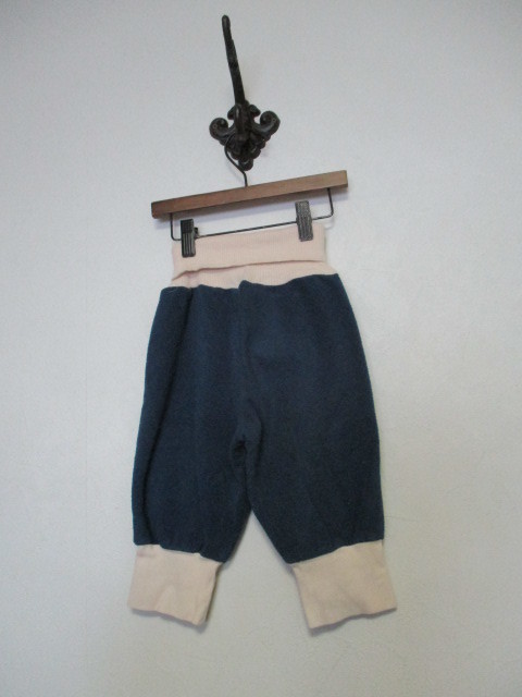 | 商品紹介 | 本体はブルー系(くすんだネイビー)のボア素材、 ウエストと裾のリブはきなり(クリームがかった白)のパンツです。 左脚に付いた恐竜のワッペンがポイントになっています。 ウエストのリブ部分は伸ばすと腹巻代わりになります。 《素材》 本体:ポリエステル100% 腹巻部:綿97% ポリウレタン3% 裾部:綿95% ポリウレタン5% |