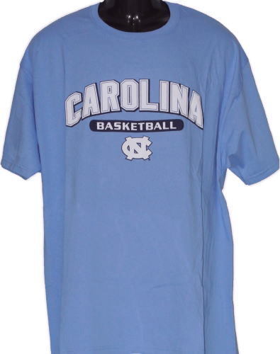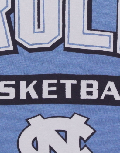 カロライナブルー生地に、大学名、NCロゴ、Basketball の文字がプリントされております。