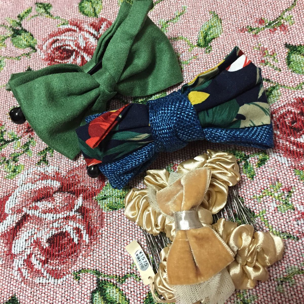 バナナクリップ2個 ダブルコームまとめてセット ベージュリボンツインコーム グリーン ブルー