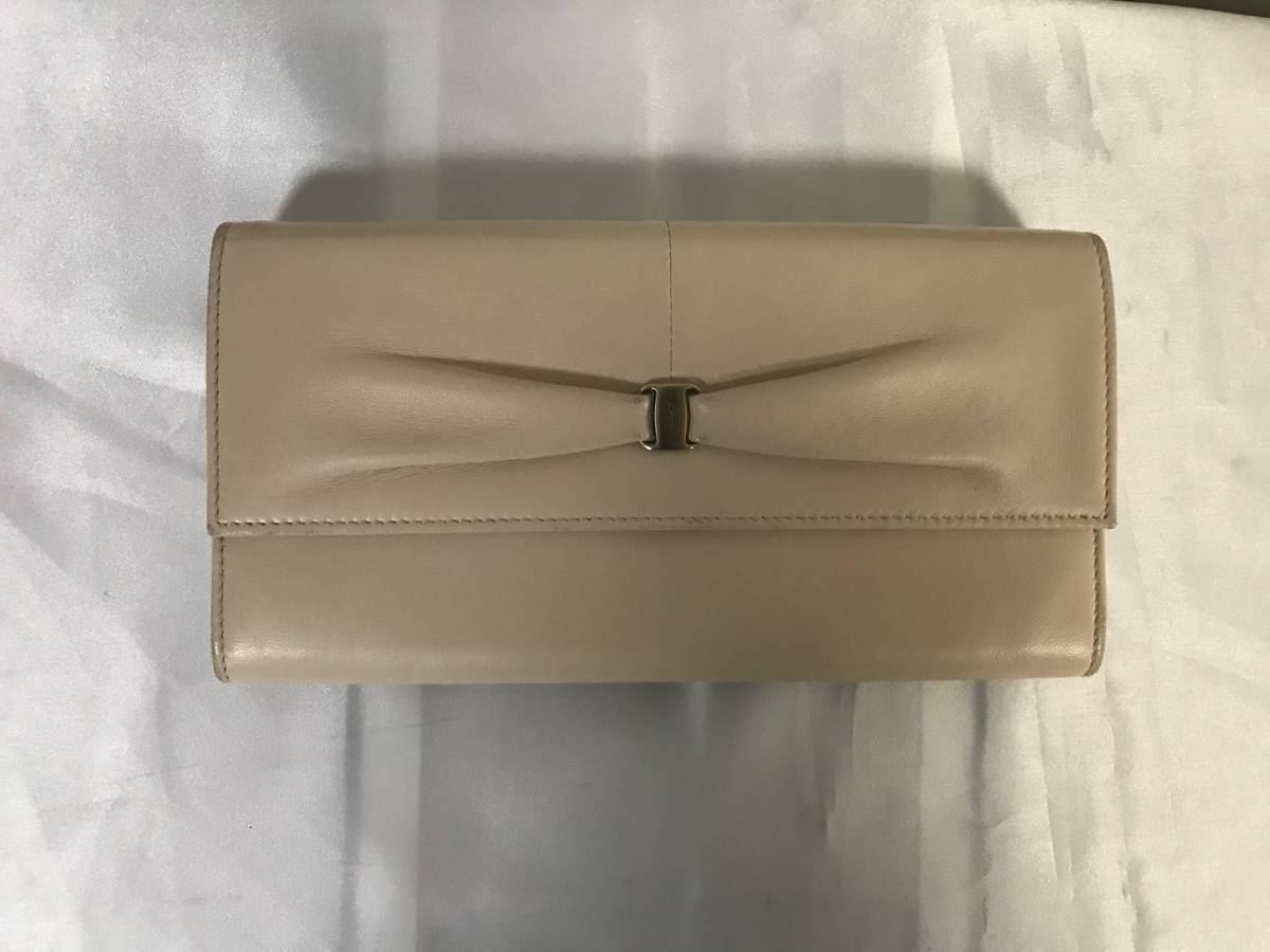 美品本物サルヴァトーレフェラガモFERRAGAMOリボンヴァラ金具本革レザー二つ折り長財布サイフレディースホワイト白イタリア製パーティー