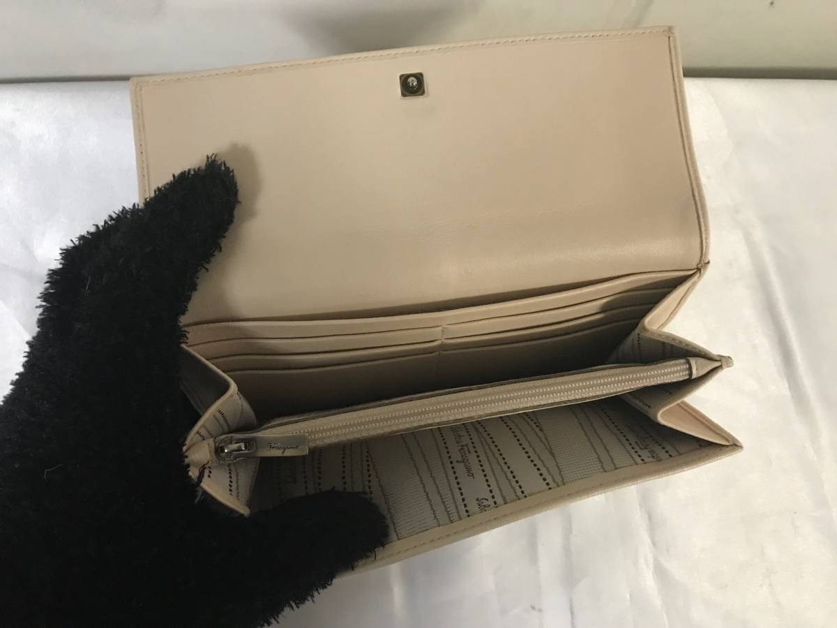 商品名:美品本物サルヴァトーレフェラガモFERRAGAMOヴァラ金具本革レザー二つ折り長財布サイフレディースオフホワイト白イタリア製パーティー