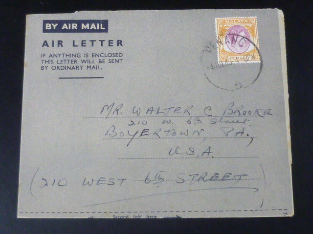 2019 P マラヤ切手 カバー№64 ペナン 1949年 SC#16 25c貼 米宛