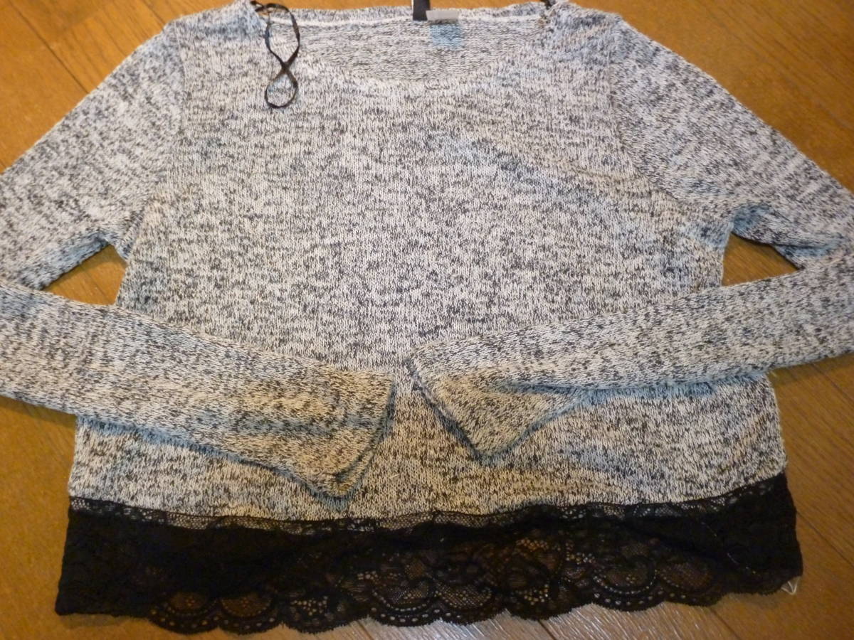 H&M 女性用薄い生地のセーター XS★霜降り★白黒