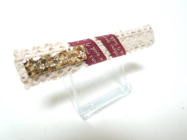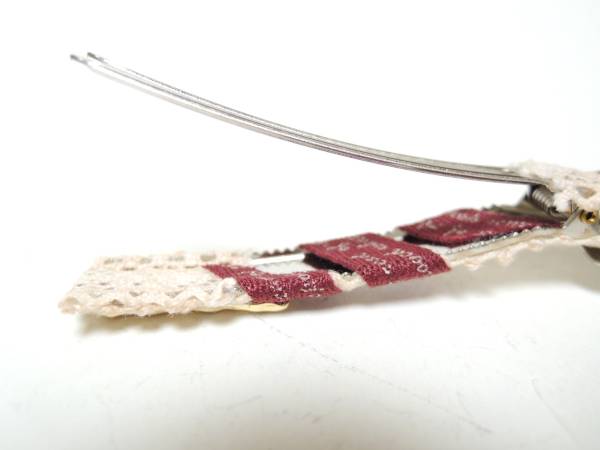 しっかりとまる レース リボン クチバシ クリップ ベージュ
