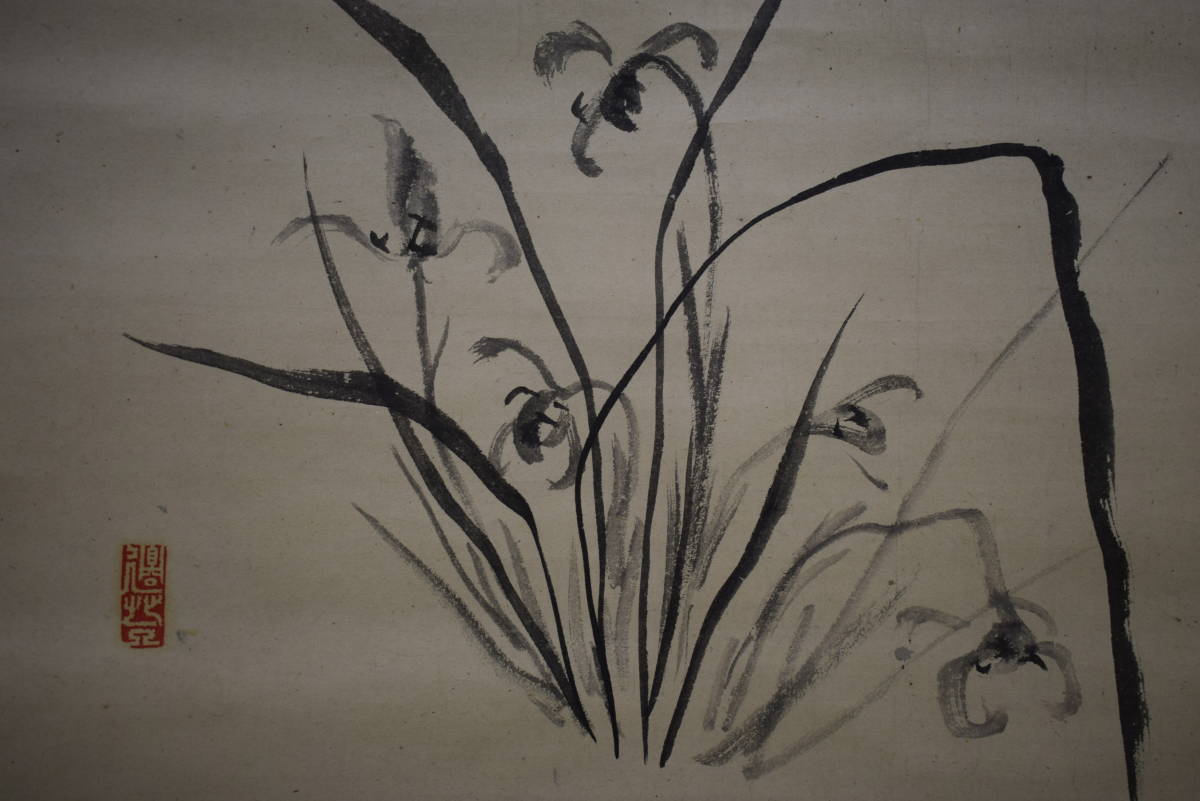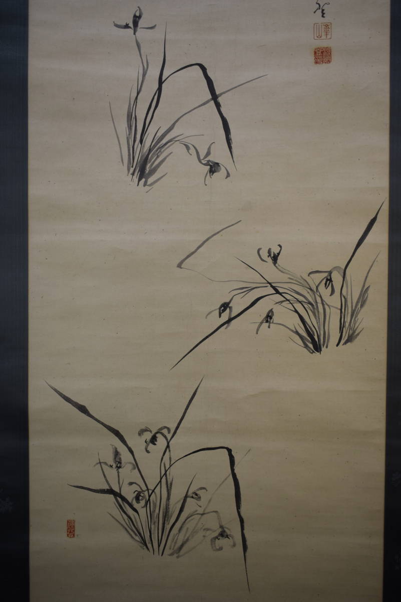 【模写】/渡辺崋山/渡辺華山/蘭図/幽谷君子図/絹表装/華石の桐極箱付/