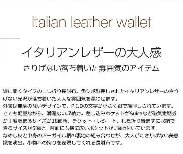 なめし皮と中身のアーガイル柄の裏地の組み合わせが、大人びたさりげない美意識を演出。小物への拘りを表現してくれる長財布です。