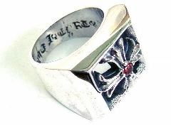 クロス中央にルビータイプのジルコニアが入ったリングです。