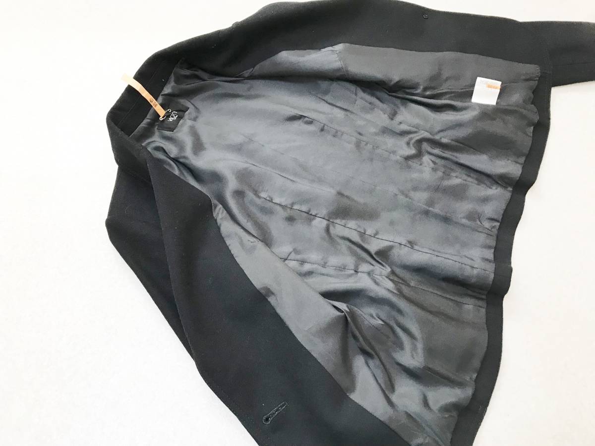 VICKY ㈱ビッキー 日本製 サイズ表記:2 お色め:ブラック 系 表地:毛97%・ポリウレタン3% 裏地:ポリエステル100% ●平置き採寸●(参考) 肩幅(肩線~肩線)/約37.4cm 身幅(脇下)/約42cm 袖丈/約60cm 着丈/約52.3/58cm 着用感がありますが とくに目立った汚れもなく、キレイな状態です。 USED品にご理解頂ける方のご入札ご検討願います。 ◆細かい点(ご利用に問題のない程度の小さな傷・匂い・汚れ・シワ等) は素人検品の為記載漏れがあることをご理解願います◆ ◆洋服のようなものは保管・発送時のしわをご理解ください。 ◎照明・パソコンの色彩環境等の違いから 掲載の画像と実物の色味が異なる場合がございます。 ★送料について★ ●日本郵便・・・料金については下記「配送方法と送料」をご参照願います。 ◆ゆうパックご選択の場合、何点落札されても同梱でお値段変わりません◆ ◆お支払いは【落札金額+送料】です。 送料がかかることを考慮した出品開始価格を設定しております。 ◆11時頃までのご入金確認で当日発送を心がけておりますが 対応出来ないときもありますので ご入金確認後の翌日~3日程度の発送でご理解ください◆ ★長期のお休みは自己紹介にて記載しております。 お手数ですがお急ぎの場合は一読お願いします。 | |||