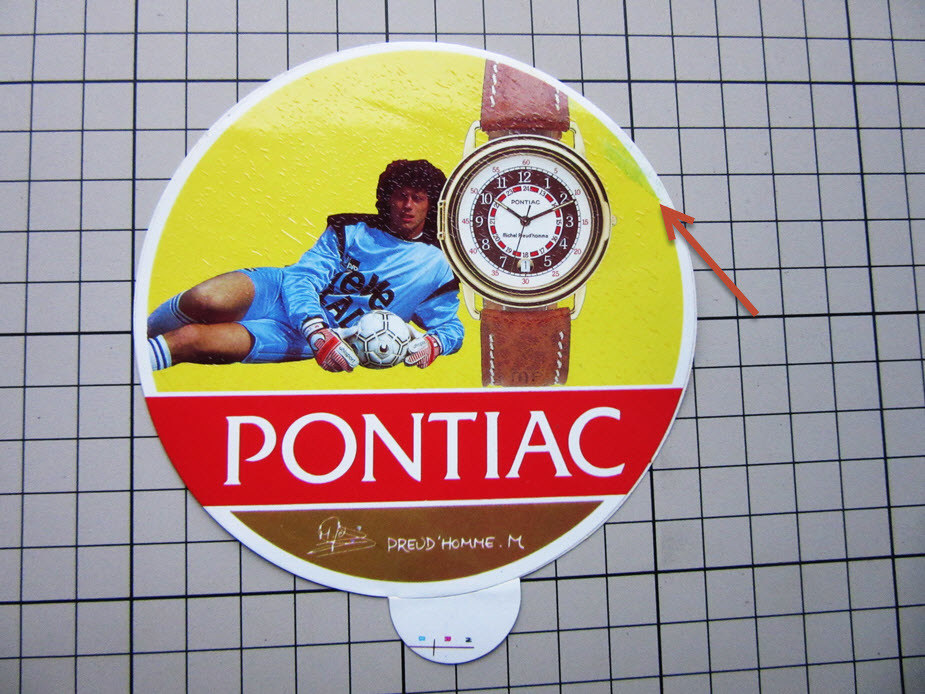 0728 【即決・定額・同梱包可能】 ★スイス時計 ポンティアック サッカー PREUD'HOMME - PONTIAC 角変色◆大型ヴィンテージ ステッカー