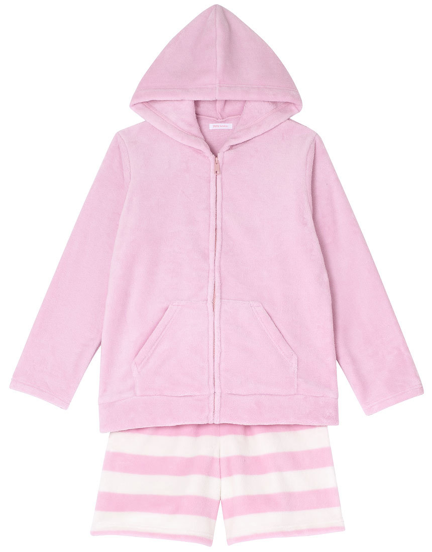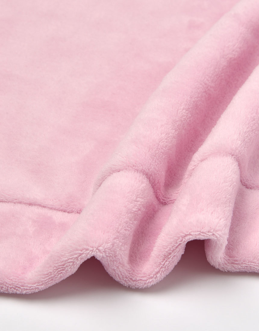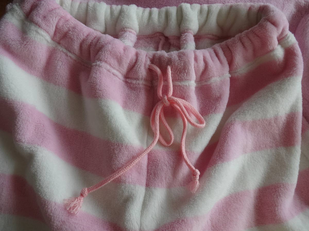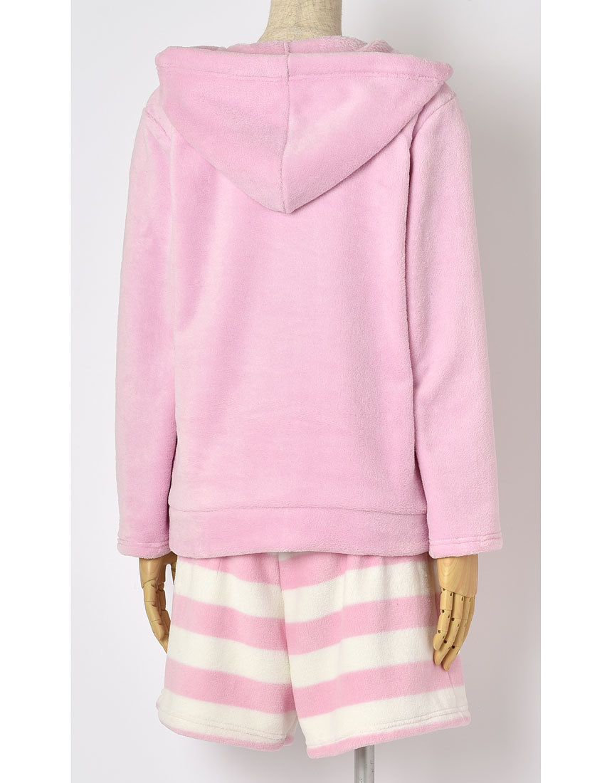 寒い季節に人気の素材です。定番のピンクと、トレンドのブルーの2色展開です。アウターでよく使われる幅広ボーダーを使用し、カジュアルな雰囲気に仕上げました。