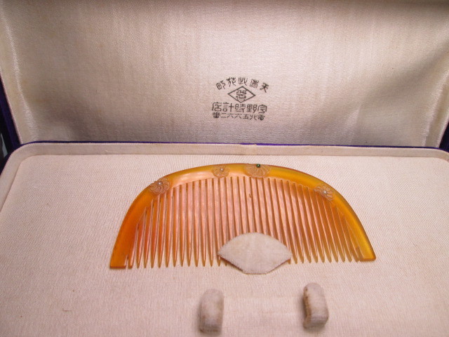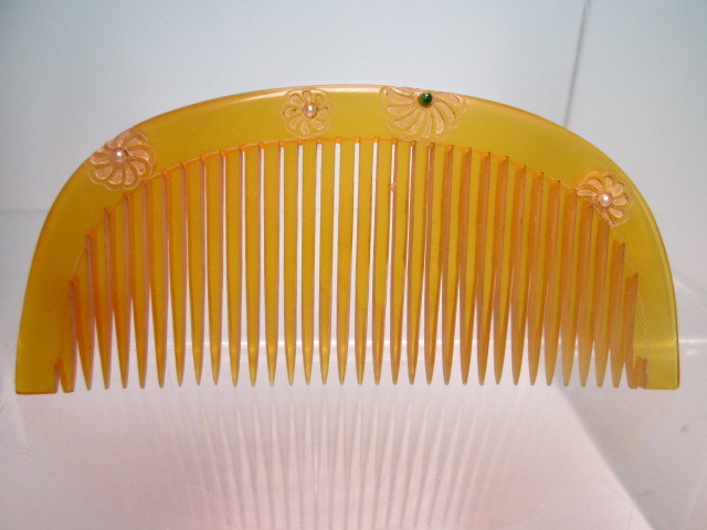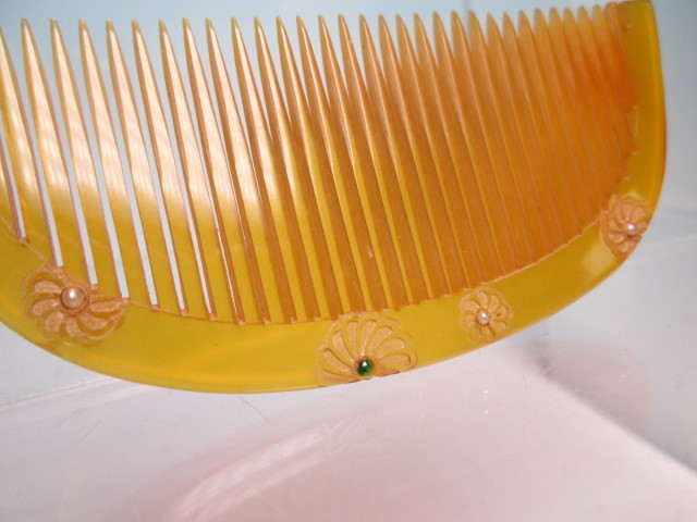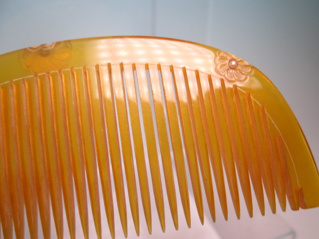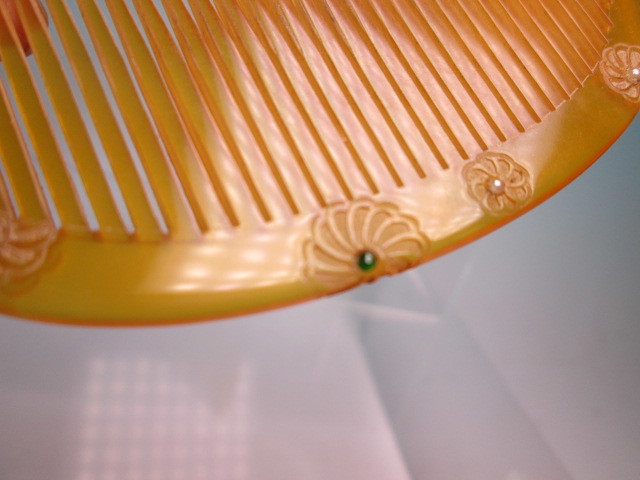 小さなベビーパールと翡翠玉を飾った清楚で品の良い櫛です。