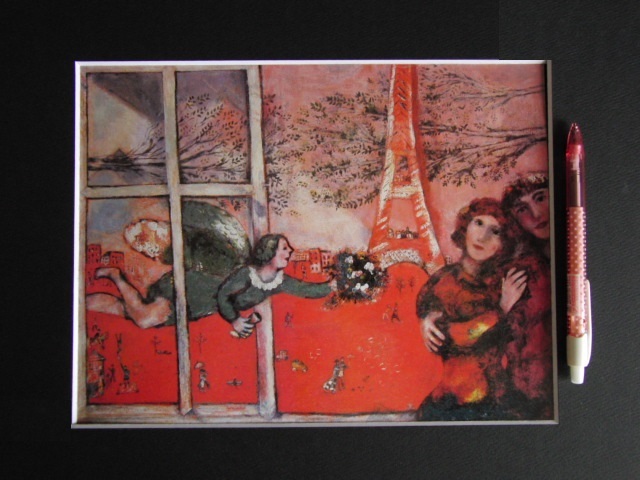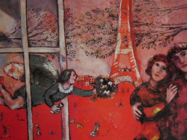 マルク・シャガール、エッフェル塔の若い夫婦、希少な大判額装用画集より、新品高級額装付、状態良好、送料無料