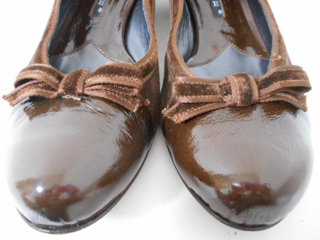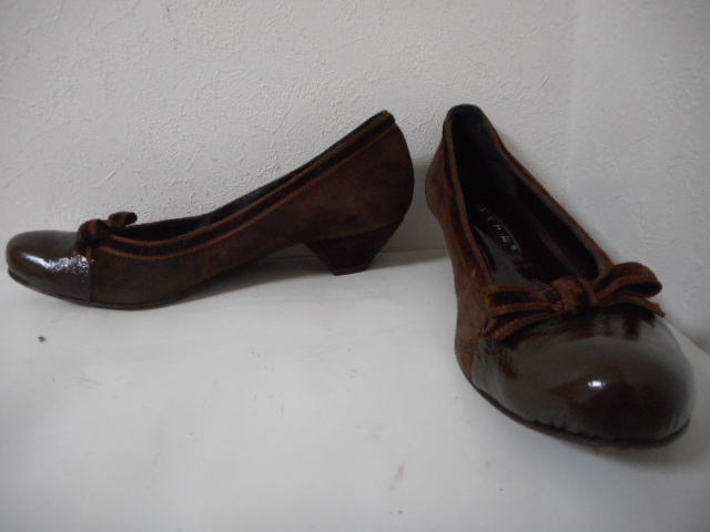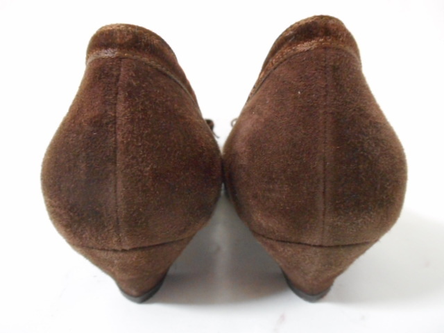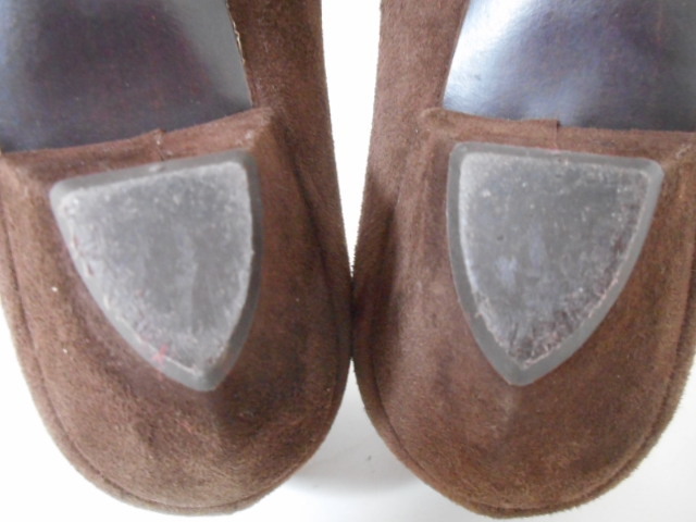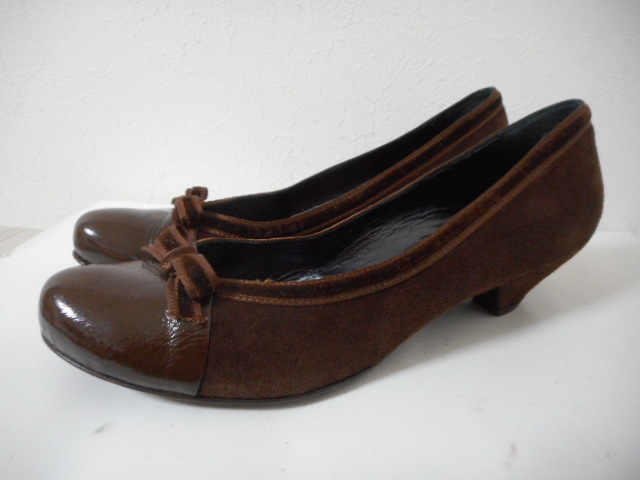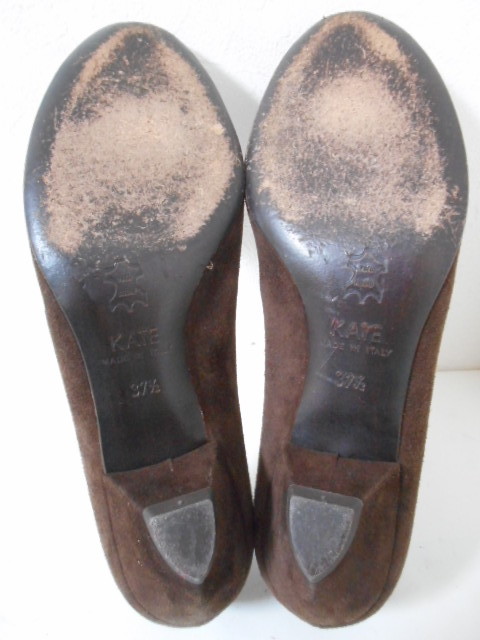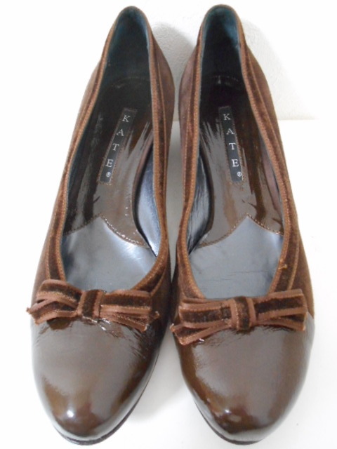 | 【ブランド・形態】 Kate ケイト リボンモチーフ スエード コンビパンプス サイズ37.5(23.5~24.0cm) イタリア製です。 【カラー】 ブラウンです。 掲載の実物写真はPC環境や光の加減により実物と色合いが若干異なる場合があります。 【特徴】 (KATE) ケイト(KATE)は、イタリアの靴工場 「フェラーリ」が、デザイナーを迎えて 「KATE MILLER」設立。 2000年より、IXIS、MODA ITALIA、 POLINI ROBERTO BOTTICELLI、VIVIAN LEEなどの シューズを手掛け成功を納める。 GAETANO PEZZOLA氏のデザインに替わり イタリアだけでなく世界中で 受け入れられるようになった。 2003年より、新たにGIULIANO BALESTRA氏が加わり フェミニンでありながら、アグレッシブで トレンドをとらえたコレクションを 確立することとなった。 2006年よりブランド名を “KATE MILLER”から“KATE”へ変更。 日本ではまだ認知度が低いが マドンナも愛用するブランドで 今後が期待されるブランド。 Kate ケイトのリボンモチーフ、異素材コンビパンプスです。 リボン・トリミングがポイントとなったフェミニンなラウンドトゥパンプスです。 スエードレザーにリボン素材と同じのトリミングが大人可愛さを醸し出すパンプスです。 つま先は程よく光沢のあるエナメルに近い素材で上品な雰囲気も漂わせます。 安定感のあるヒールを採用して、快適な履き心地も実現。 スタイリングを引き締めるシックなカラーも魅力です。 普段使いからフォーマルなシーンにもお使いいただけます。 ヒール高さ:3.5cm、 最大幅:8.3cm 【状態】 少々使用感はございますが、特に目立つダメージは見受けられず、使用に問題無いと思われます。 アッパーは比較的にきれいです。アウトソール・ヒールはそれなりにすり減りがあります。 箱は付属しません。 【素材】 アッパー素材:本皮革 アウトソール素材:皮革底 【サイズ】 37.5(23.5~24.0cm)、 重量:375g | |||