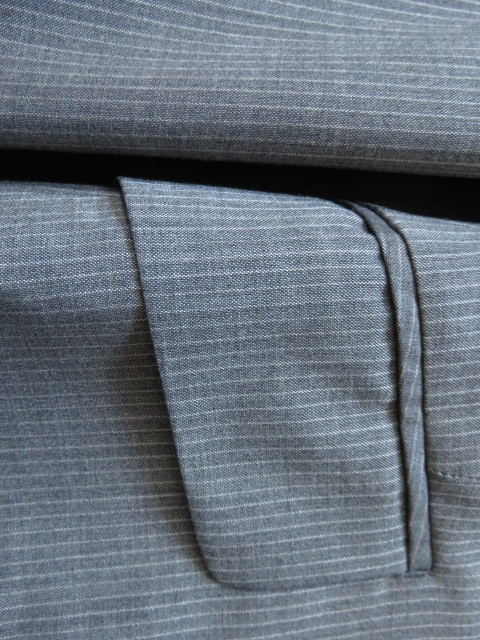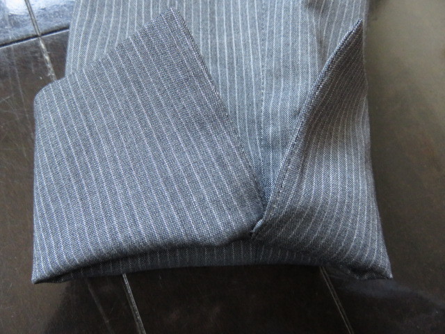 背抜き裏地、七分袖スリット入り、内ポケット2箇所、バックセンターベント。
