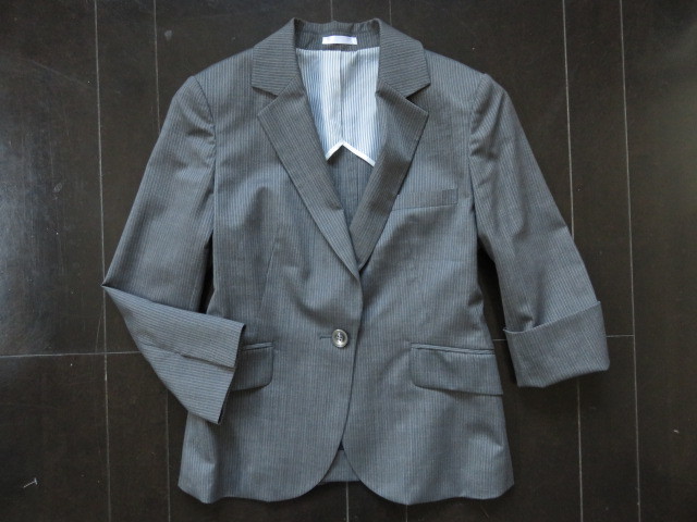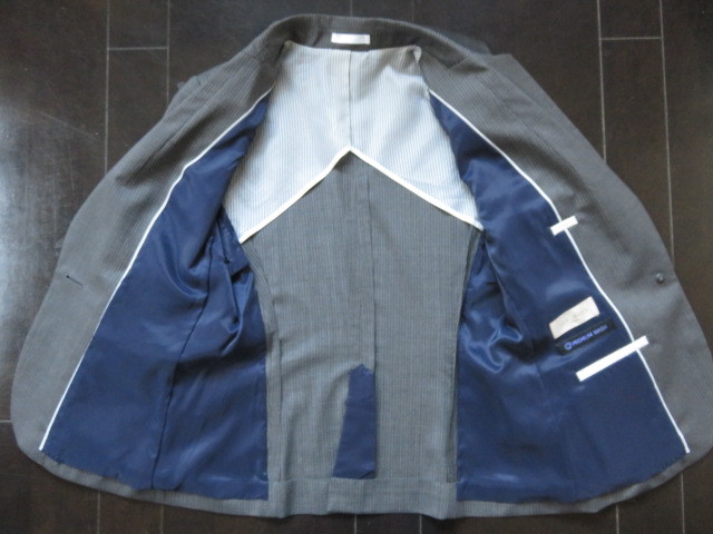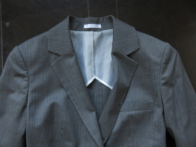 AOKI【LES MUES】レミューの高級プレミアムウオッシュジャケット、お色はグレー、ストライプです。