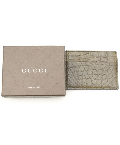GUCCI グッチ ◇ リアル マット クロコダイル ソフト レザー アリゲーター 名刺入れ カードケース ◇ クロコ ワニ 鰐 皮 革 ポロサス