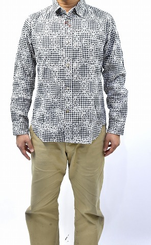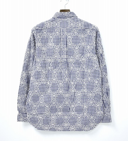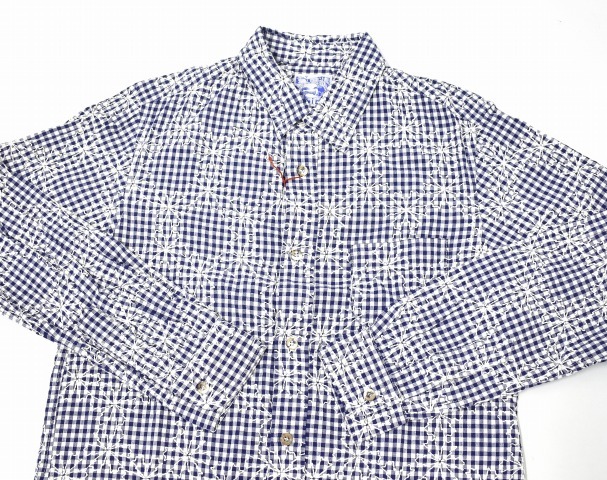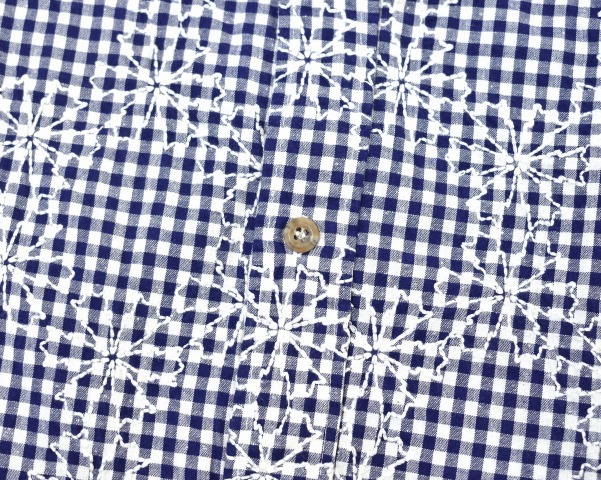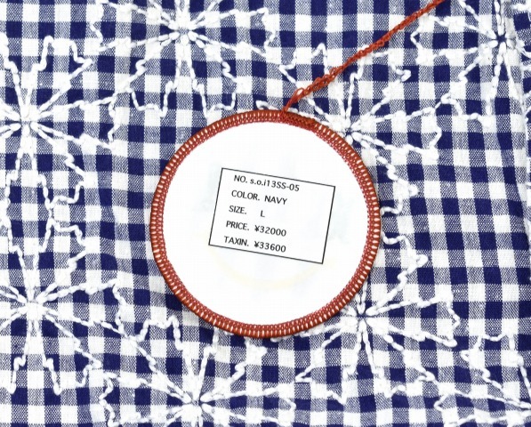 「SPLOTCH of ink」のEmbroidery Gingham Check Shirtsです。 ・素材:コットン100%。 ・カラー:ネイビー。 ・サイズ:L。 実寸・肩幅 約43.5cm・身幅 約53cm・着丈 約73.5cm・袖丈 約62cm。(多少の誤差はお許しください) 裁断前の段階のややネップ感のあるギンガムチェックの生地に、雪の結晶をモチーフとした刺繍を全面に施すことで、柄と刺繍が織り成す雰囲気が秀逸なシャツに仕立てられたアイテム。 一度洗いをかけて生地に縮みを生じさせることで、程良くやれた柔らかな風合いが生まれ、さらに刺繍による縮絨効果でより凹凸感のある表情に仕上げられているなど、inkならではのこだわりのギミックが凝縮された一着。 ギンガムチェックの白に合わせた雪結晶の刺繍を施すことで、総柄に全面刺繍で大胆ながらも絶妙なバランスとまとまりを感じる、全く新しいテキスタイルを生み出しており、シャツに仕上がる前の生地の段階で刺繍が施されているため、刺繍の位置がそれぞれ異なっているのに加え、今までペンドルトンやヘビーネルなどのシャツをリメイクに使用した際に出た、柄も新旧も異なるアジのあるアンティークのボタンがアソートで用いるなど、全てが一点物のシャツとなっているのも非常に魅力的な一着。 素材を最大限に活かすinkらしい独創的な発想も然ることながら、テーラーリングパターンを駆使したシルエットメイキングはどの角度から見ても美しい形状に仕上げ、細いアームラインや体に沿うシルエットながらもストレスの少ない、仕立ての良さが際立つシャツです。 新品。タグ付き。定価¥33600。 かなりお値打ちだと思います。この機会にぜひ!。 他にもいろいろ出品しています。 管理番号:091309MZY-067702 ★ PD082408-500 |