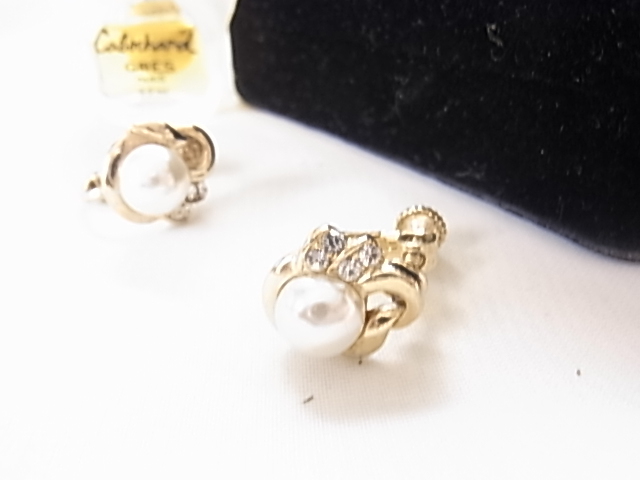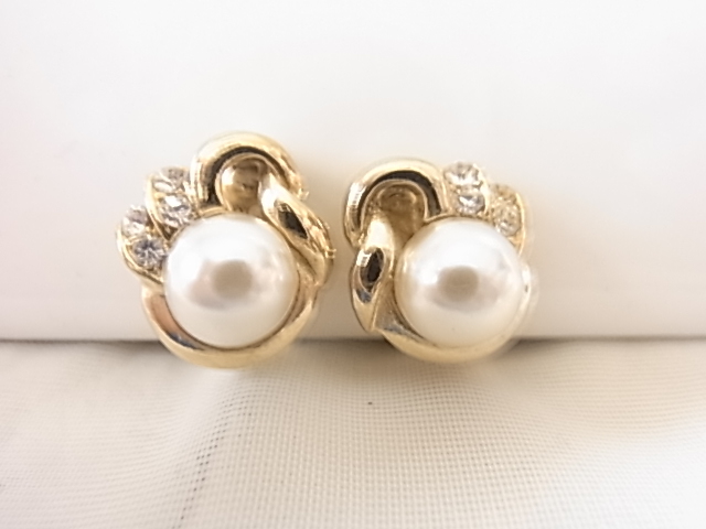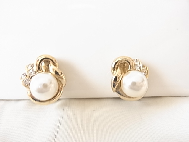 パール調ビジューとキュービックジルコニアが輝くデザイン 可愛くキュート 耳元が華やぐ イヤリング◆