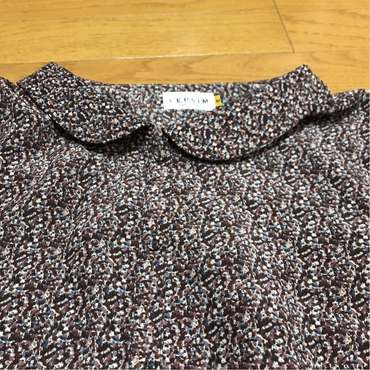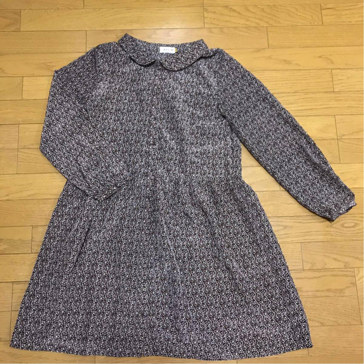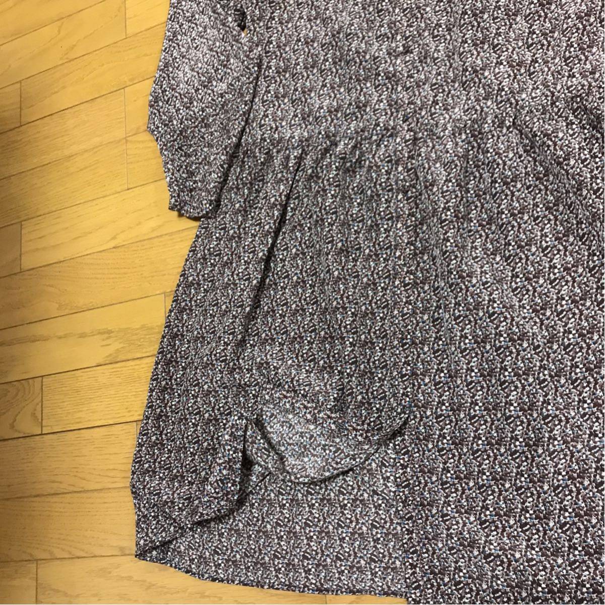 送料無料■LEPSIM レプシム 長袖 丸襟 ブラウン系 総柄 ワンピース サイズM